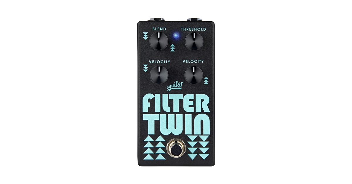 La presenza di due filtri che si muovono contemporaneamente conferisce una voce organica e consente di ottenere nuovi timbri più espressivi. Il pannello frontale dell'Aguilar Filter Twin Gen2 appare intuitivo e di facile gestione grazie alla presenza di quattro manopole. Con il controllo BLEND è possibile regolare il mix fra i due filtri operanti, con la manopola THRESHOLD si determina la sensibilità dell'unità in base al segnale ricevuto in ingresso e con i due controlli VELOCITY è possibile gestire la velocità con la quale ogni filtro agisce.