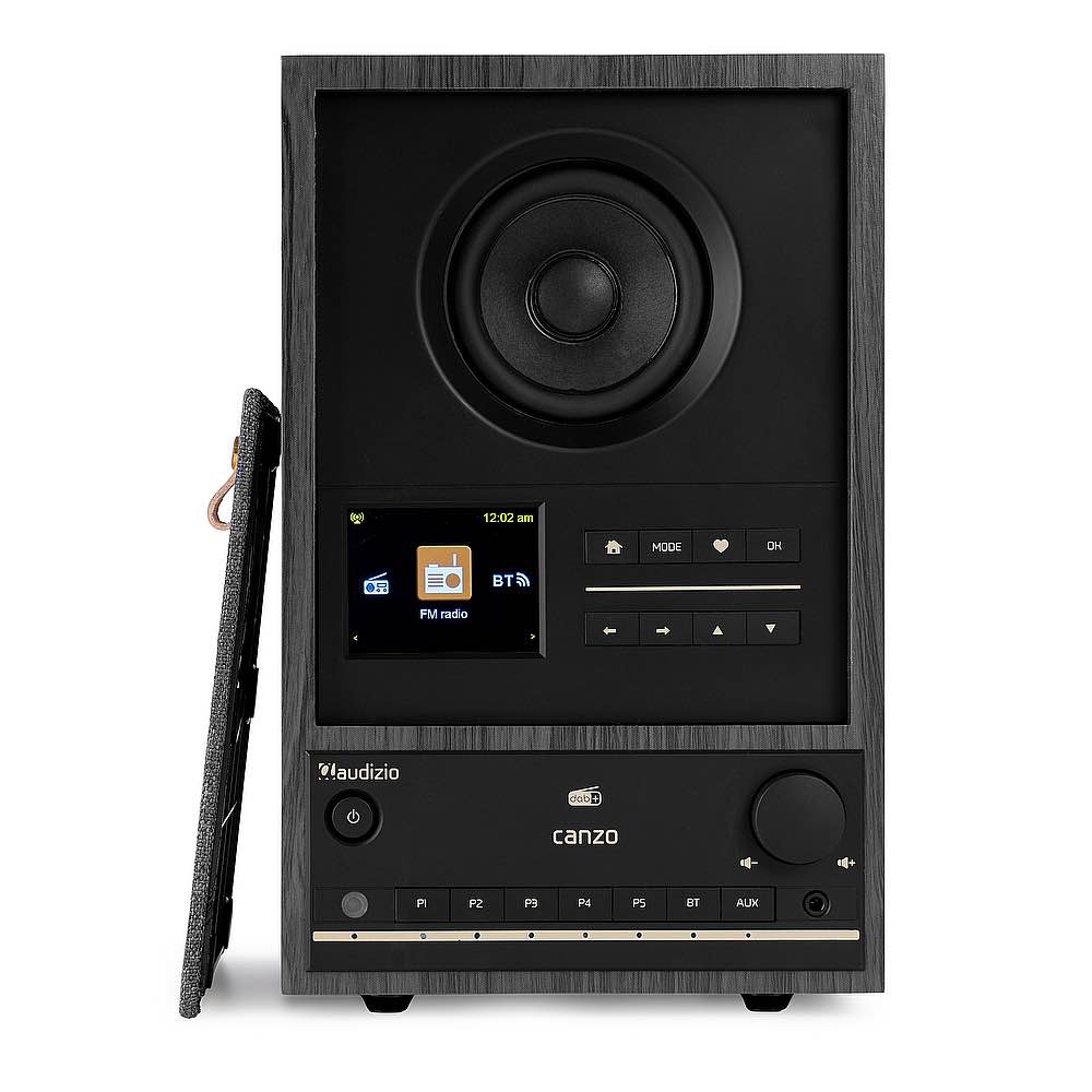 <p>Scopri le eccezionali prestazioni audio del sistema musicale digitale Canzo. Dotato di un altoparlante ad alto rendimento, questo sistema ti consente di ascoltare tutti i tipi di generi musicali trasmessi in streaming da varie fonti online. Connettiti rapidamente e facilmente tramite LAN o Wi-Fi e accedi a oltre 32.000 stazioni radio Internet. Il Canzo include anche la radio digitale (DAB+), una radio FM e uno schermo a colori nascosto con unità di controllo dietro il pannello frontale rimovibile. Grazie al ricevitore streaming BT integrato, puoi connettere facilmente il tuo iPhone, iPad o dispositivi Android compatibili per riprodurre in streaming in modalità wireless la tua musica. Questo sistema musicale all'avanguardia è perfetto per qualsiasi soggiorno, cucina, camera da letto o ufficio.<br/></p><ul><li>Radio DAB+ / FM / Internet Modello da scaffale</li><li>Supporto BT per lo streaming audio</li><li>Altoparlante ad alta potenza a gamma completa</li><li>Supporta il collegamento Wi-Fi 802.11b/g/n</li><li>Collegamento LAN RJ45</li><li>Funzione di riproduzione della chiavetta USB</li><li>Schermo LCD da 2,4” in colore colorato con funzione dimmer</li><li>Settimana e orologio</li><li>Portatelefono da 3,5 mm</li><li>3,5 mm Aux lijningang e lijnuitgang</li><li>Funzioni incluse</li></ul><ul><li>Product colour Dark Grey</li><li>Playback options BT 5.3 streaming, USB, FM radio, DAB+ radio, Internet radio, WiFi play, RJ45 ethernet play, Line input, Microphone (input)</li><li>Input connections 3.5mm Jack, USB</li><li>Output connections 3.5mm Jack</li><li>Output power 40W</li><li>Power supply 100-240VAC 50/60Hz (18V adapter)</li><li>Dimensions (L x W x H) 142 x 160 x 260mm</li><li>Weight (kg) 2,00</li><li>Included accessories Remote control (wireless), Power adapter</li></ul>