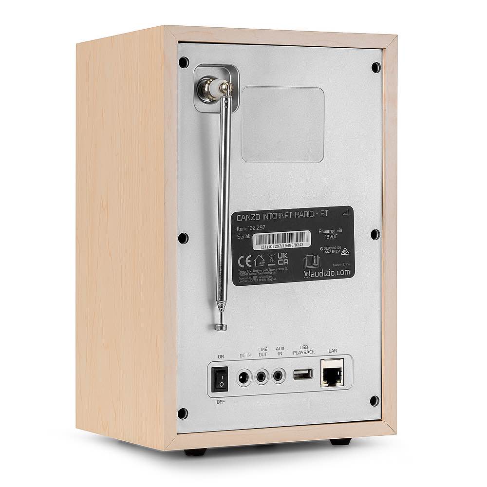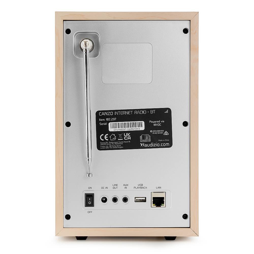 <p>Scopri le eccezionali prestazioni audio del sistema musicale digitale Canzo. Dotato di un altoparlante ad alto rendimento, questo sistema ti consente di ascoltare tutti i tipi di generi musicali trasmessi in streaming da varie fonti online. Connettiti rapidamente e facilmente tramite LAN o Wi-Fi e accedi a oltre 32.000 stazioni radio Internet. Il Canzo include anche la radio digitale (DAB+), una radio FM e uno schermo a colori nascosto con unità di controllo dietro il pannello frontale rimovibile. Grazie al ricevitore streaming BT integrato, puoi connettere facilmente il tuo iPhone, iPad o dispositivi Android compatibili per riprodurre in streaming in modalità wireless la tua musica. Questo sistema musicale all'avanguardia è perfetto per qualsiasi soggiorno, cucina, camera da letto o ufficio.<br/></p><ul><li>Radio DAB+ / FM / Internet Modello da scaffale</li><li>Supporto BT per lo streaming audio</li><li>Altoparlante ad alta potenza a gamma completa</li><li>Supporta il collegamento Wi-Fi 802.11b/g/n</li><li>Collegamento LAN RJ45</li><li>Funzione di riproduzione della chiavetta USB</li><li>Schermo LCD da 2,4” in colore colorato con funzione dimmer</li><li>Settimana e orologio</li><li>Portatelefono da 3,5 mm</li><li>3,5 mm Aux lijningang e lijnuitgang</li><li>Funzioni incluse</li></ul><ul><li>Product colour Wood</li><li>Playback options BT 5.3 streaming, USB, FM radio, DAB+ radio, Internet radio, WiFi play, RJ45 ethernet play, Line input, Microphone (input)</li><li>Input connections 3.5mm Jack, USB</li><li>Output connections 3.5mm Jack</li><li>Output power 40W</li><li>Power supply 100-240VAC 50/60Hz (18V adapter)</li><li>Dimensions (L x W x H) 142 x 160 x 260mm</li><li>Weight (kg) 2,00</li><li>Included accessories Remote control (wireless), Power adapter</li></ul>