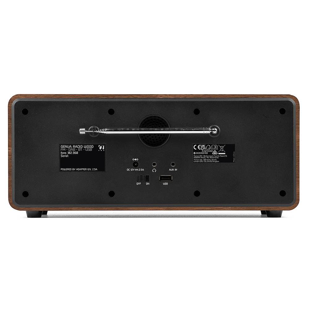 <p>La radio Genua DAB+ è un elegante sistema audio stereo digitale, alloggiato in un alloggiamento moderno, adatto a qualsiasi casa o ufficio. Basta collegare la radio alla rete elettrica per goderti immediatamente un'ampia selezione di stazioni radio tramite la radio digitale DAB+ o quando sei fuori dall'area di trasmissione digitale con la radio FM convenzionale. La Genua Digital Radio è dotata anche di un ampio display LCD a colori che mostra la stazione radio selezionata, nonché la programmazione attuale, le notizie e le informazioni meteo, se abilitate dall'emittente. Con la tecnologia wireless BT, riproduci la musica direttamente dal tuo smartphone, tablet o PC. Il Genua dispone anche di timer di spegnimento e di cucina.<br/></p><ul><li>Radio DAB+/FM multifunzionale</li><li>Qualità del suono stereo superiore</li><li>Ricevitore BT per lo streaming audio</li><li>Ampio display TFT a colori da 2,8 pollici</li><li>Funzione Dimming</li><li>Radio DAB/FM (30 + 30 preimpostazioni)</li><li>Funzione di scansione automatica</li><li>Orologio/Timer di spegnimento</li><li>Doppia funzione di allarme</li><li>Uscita per cuffie da 3,5 mm</li><li>Ingresso ausiliario da 3,5 mm</li><li>Incluso telecomando</li></ul><ul><li></li><li>Product colour Black, Brown</li><li>Playback options BT streaming, USB, FM radio, DAB+ radio, Line input</li><li>Input connections 3.5mm Jack, USB</li><li>Output connections 3.5mm Jack</li><li>Output power 50W</li><li>Power supply 100-240VAC 50/60Hz (12V Adapter)</li><li>Dimensions (L x W x H) 135 x 310 x 133mm</li><li>Weight (kg) 1,55</li></ul>