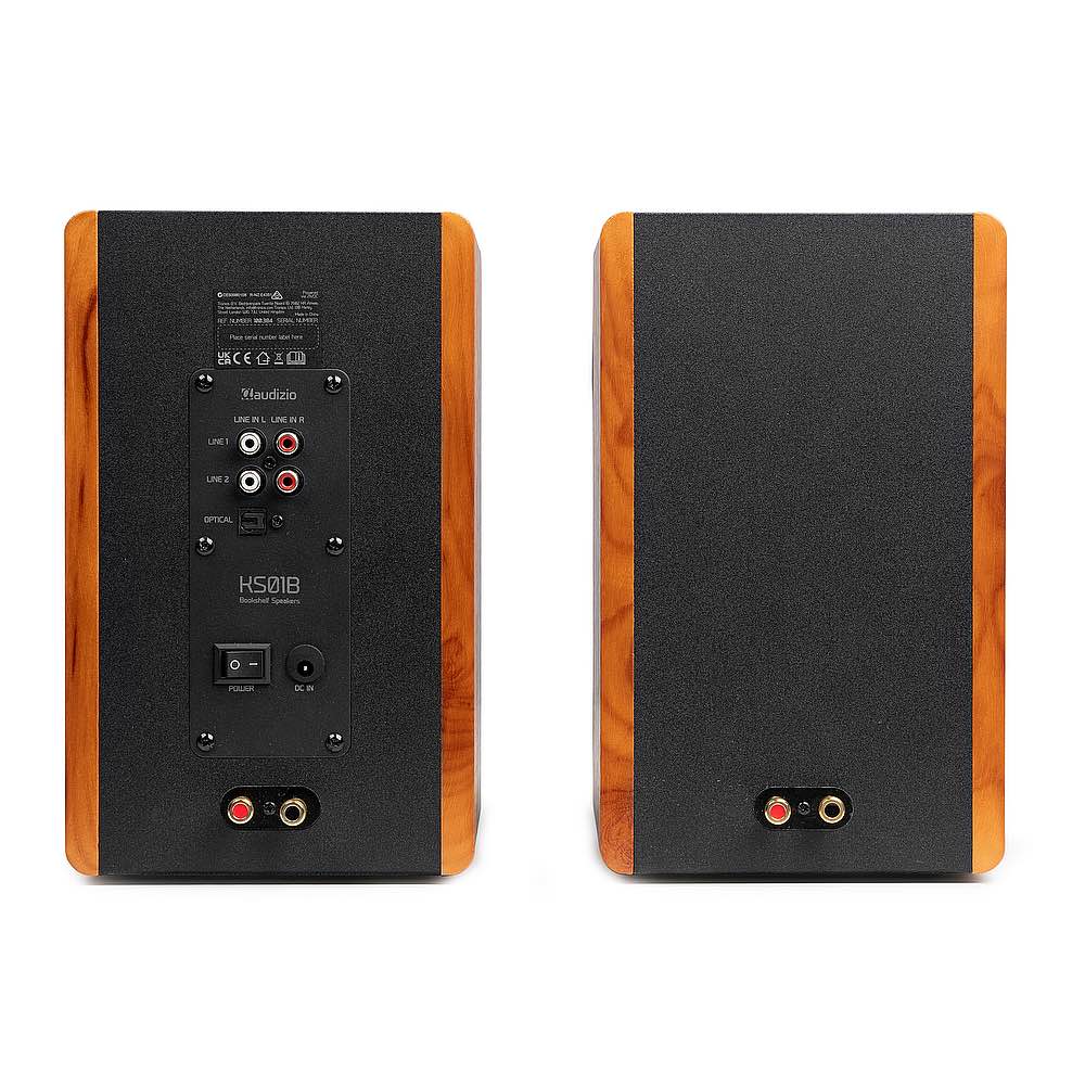<p>Scopri il suono così come deve essere ascoltato con i set di diffusori da scaffale attivi della serie Audizio KS. Progettati per un suono nitido e coinvolgente, questi eleganti altoparlanti offrono bassi ricchi e alti dettagliati, perfetti per gli amanti della musica, gli appassionati di cinema e i giocatori. Dotati di connettività BT, ingressi ottici e RCA, si accoppiano perfettamente con TV, PC, smartphone o giradischi. Con un amplificatore integrato e un design moderno e compatto, gli altoparlanti della serie KS uniscono facilmente prestazioni e stile per adattarsi a qualsiasi spazio.<br/></p><ul><li>Set di altoparlanti HiFi attivi</li><li>Amplificatore digitale incorporato</li><li>Design compatto elegante</li><li>Connettività BT: riproduci musica in streaming in modalità wireless con facilità</li><li>Ingressi: ottico e RCA (Line in 1 e Line in 2)</li><li>Controlli dei bassi e degli acuti</li><li>Connessione USB per la riproduzione</li><li>Tecnologia DSP: modalità audio film/musica/notizie</li><li>Facile da configurare e utilizzare</li><li>Il set è composto da: 1 altoparlante attivo e 1 passivo</li><li>Terminali placcati oro</li><li>Incluso telecomando</li></ul><ul><li>Product colour Black, Wood</li><li>Playback options BT 5.0 streaming, USB, Line input</li><li>Input connections Optical, RCA</li><li>Output power: Max 120W</li><li>Output power: RMS 60W</li><li>Diameter tweeter 1.25″</li><li>Tweeter type Dome</li><li>Diameter woofer 4″</li><li>Frequency response 45Hz - 20.000Hz</li><li>Impedance 4 Ohm</li><li>Power supply 100-240VAC 50/60Hz (19V Adapter)</li><li>Dimensions (L x W x H) 194 x 153 x 250 (Active speaker)</li><li>Weight: Each 2.2</li><li>Weight (kg) 5,75</li><li>Included accessories Remote control (wireless), Power adapter, Speaker cable (5m)</li></ul>