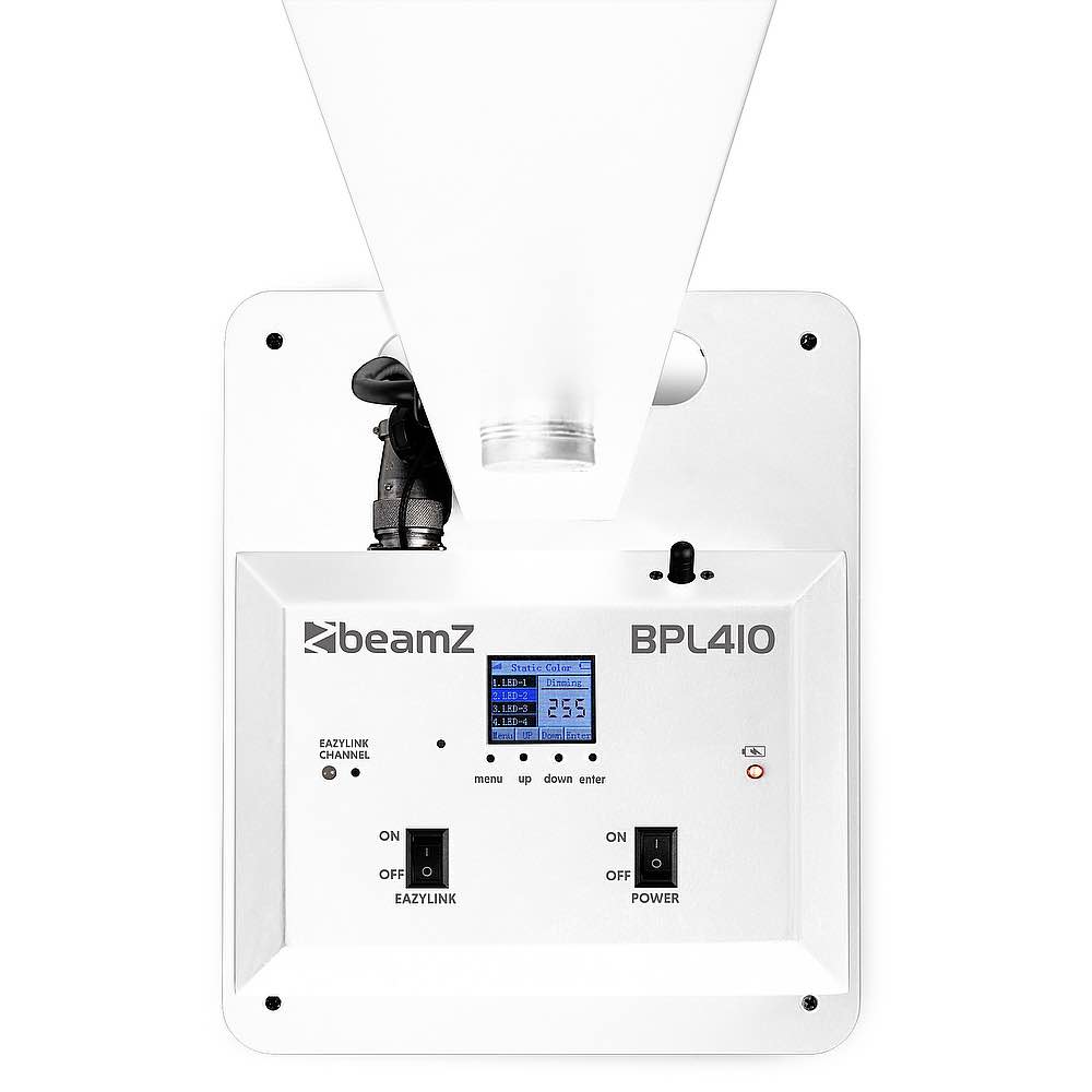 <p>Il BPL410 è un supporto luminoso alimentato a batteria dal design elegante, senza cavi, che ridefinisce l'illuminazione decorativa per banchetti, banconi di presentazione, giardini ed eventi vari. Il semplice sistema di montaggio con emettitori di luce regolabili può essere puntato in qualsiasi direzione per un'illuminazione precisa. Grazie al design modulare, è possibile utilizzare la lampada come lampada da terra o come barra sospesa con 4 faretti. Il palo della luce è dotato di una robusta base zavorrata per garantire la massima stabilità, anche quando il supporto è nel punto più alto. Per maggiore comodità, è disponibile anche un flight case opzionale, che può contenere due unità complete per un trasporto senza sforzo.</p><ul><li>Luce da palo alimentata a batteria</li><li>4 LED bianchi caldi da 10 W</li><li>Zoom manuale: 4-45 gradi</li><li>Angolo di illuminazione regolabile</li><li>Base robusta con peso extra</li><li>Pacco batteria agli ioni di litio ad alta capacità</li><li>Durata della batteria: fino a 20 ore</li><li>Tempo di ricarica della batteria: 6 ore (piena potenza)</li><li>Ricevitore DMX wireless integrato (per EazyLink)</li><li>Ingresso/uscita DMX tramite XLR a 3 pin</li><li>Ingresso/uscita P-Con</li><li>Montaggio/smontaggio rapido senza attrezzi</li><li>Incluso telecomando</li><li>Colore: bianco</li></ul><ul><li>Product colour White</li><li>Colour temperature 2700K</li><li>Light source Single colour LED</li><li>Colours Warm White</li><li>LED power (single LED) 10W</li><li>Quantity of LEDs 4</li><li>Beam angle: Min 4°</li><li>Beam angle: Max 45°</li><li>Illuminance 12.865 lx @ 1m</li><li>Flash rate per second 1 - 17Hz</li><li>DMX channels 4, 8</li><li>DMX connection 3-pin XLR, Wireless DMX</li><li>Modes DMX, Manual, Master/Slave</li><li>IP rating IP20</li><li>Cooling Convection</li><li>Display LCD</li><li>Power plug P-Con</li><li>Power consumption 0.536 - 0.274A</li><li>Battery 11.1V - 25Ah</li><li>Power supply 100-240VAC 50/60Hz (12V Adapter)</li><li>Dimensions (L x W x H) 2360 x 250 x 300mm</li><li>Weight (kg) 11,65</li><li>Included accessories Remote control (wireless)</li></ul>