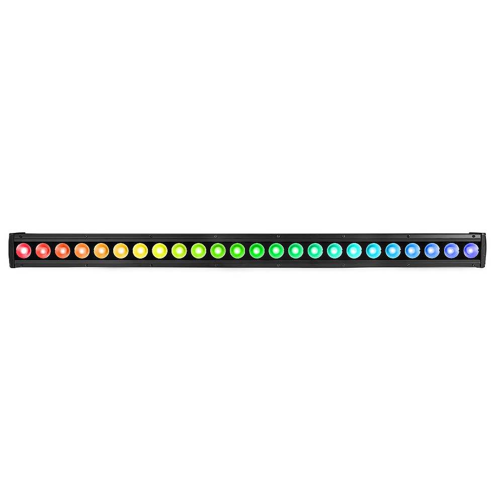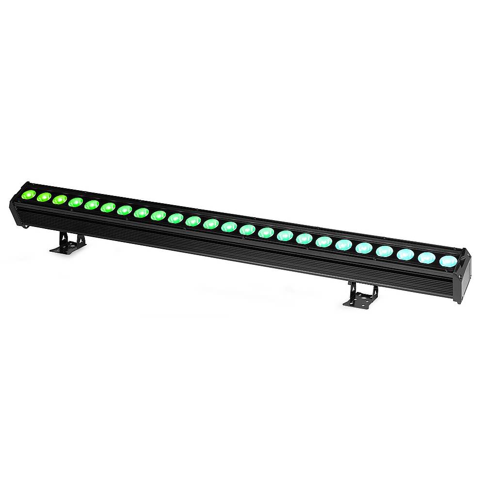 <p>The LCB246IP is a durable aluminium LED bar engineered for outdoor environments. Leveraging cutting-edge LED technology, the LCB246IP delivers stunning wash effects. This fixture is versatile, perfect for everything from uplighting expansive venues and buildings to illuminating stages for live events. Featuring a convection-cooled cast aluminium housing, it includes watertight internal gaskets and weather-resistant power and DMX cable in/out connections. Delivery includes an infrared remote control for quick and easy operation.</p><ul><li>24x 6W 6-in-1 LEDs</li><li>RGBWA-UV colour mixing</li><li>LEDs with independent control ability</li><li>Waterproof IP65 for indoor/outdoor use</li><li>Different colour presets</li><li>Pre-programmed shows and adjustable speed</li><li>Electronic dimming</li><li>Strobe effect</li><li>DMX and Stand-alone mode</li><li>Master/Slave function</li><li>Control panel with LED display (touch button)</li><li>Aluminium housing with convection cooling</li><li>Waterproof connectors DMX and power</li></ul><ul><li>Product colour Black</li><li>Light source 6-in-1 LED</li><li>Colours Red, Green, Blue, Amber, White, Ultra Violet</li><li>LED power (single LED) 6W</li><li>Quantity of LEDs 24 (8 sections)</li><li>Beam angle 20°</li><li>Field angle 48°</li><li>Illuminance 11.023 lx @ 1m</li><li>Flash rate per second 1 - 23Hz</li><li>Modes Automatic programs, DMX, Manual, Master/Slave</li><li>Sound to light mode Yes</li><li>DMX channels 6, 8, 11, 48, 52</li><li>DMX connection 3-pin Screw Connector</li><li>Daisy chain Yes (max. 6 bars)</li><li>IP rating IP65</li><li>Cooling Convection</li><li>Display LCD</li><li>Power plug Fixed power lead</li><li>Power consumption 1.395 - 0.751A</li><li>Power supply 100-240VAC 50/60Hz</li><li>Dimensions (L x W x H) 1000 x 80 x 135mm</li><li>Weight (kg) 3,75</li><li>Included accessories Mounting bracket, Power cable</li></ul>