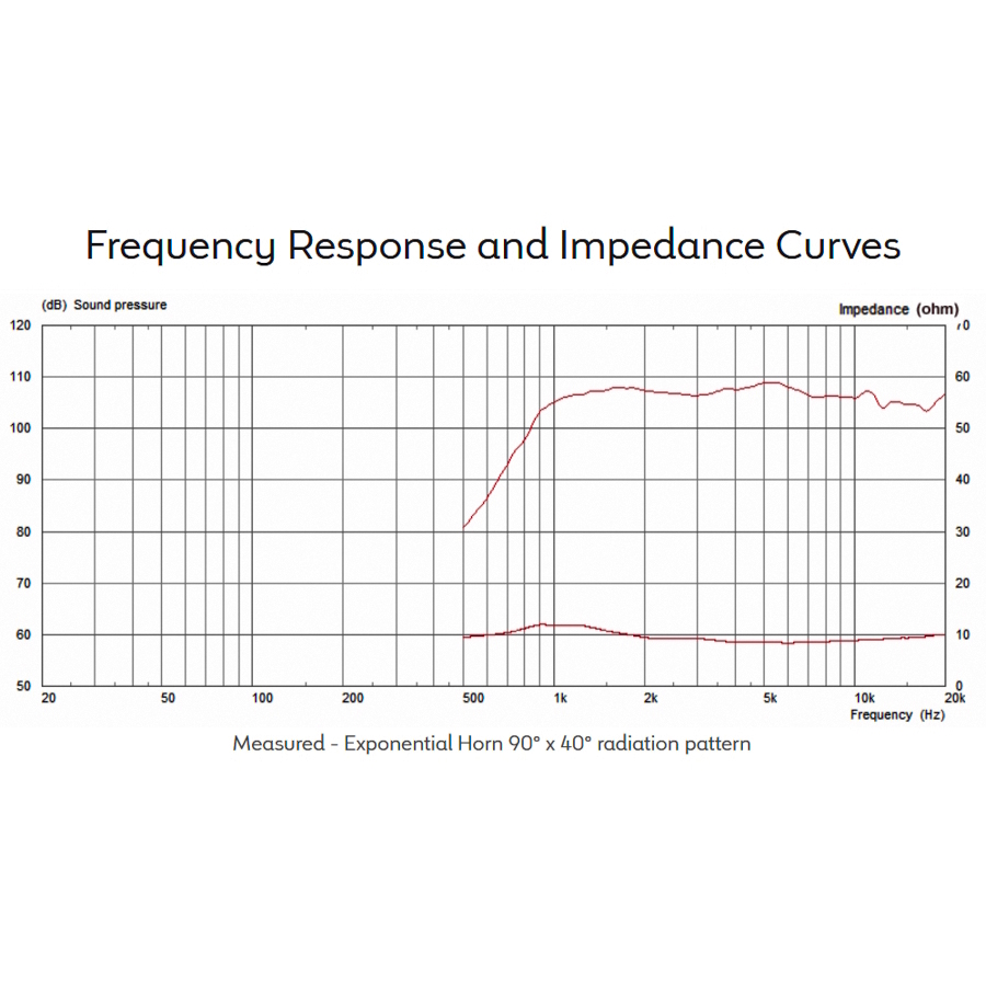 - Sensibilità: misurata sull'asse a 1 W, 1 m, utilizzando una tromba tipica, in ambiente anecoico 2π.