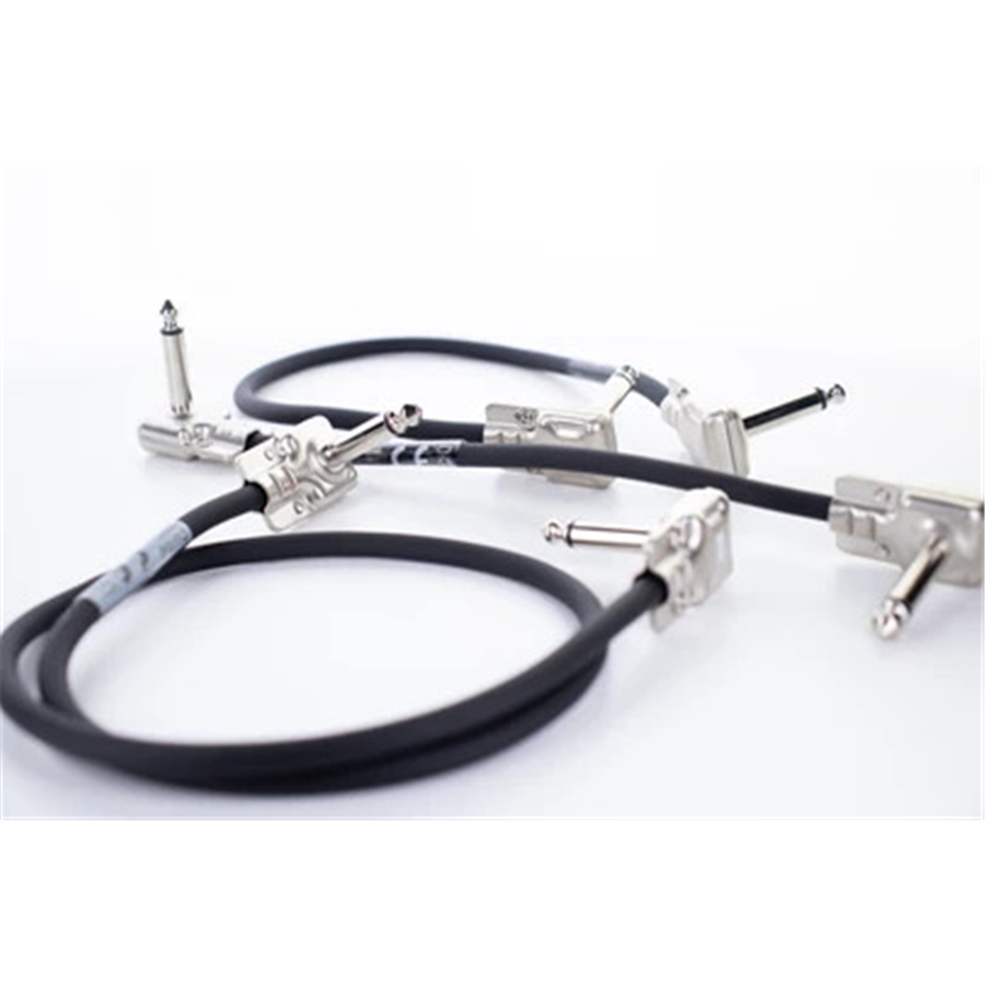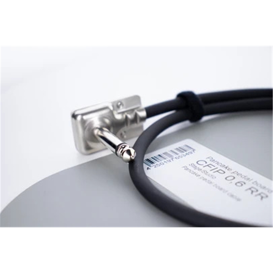 Con i suoi plug piatti, il cavo patch CFIP RR sporge di 1 cm dalla presa jack da 6,3 mm dei pedali effetto. Il cavo con il quale è assemblato, l'essantials 5, è altrettanto "salvaspazio", e presenta un diametro di meno di 6 mm nonostante l'importante area di conduzione di 0,22 mm² e la schermatura in rame.
