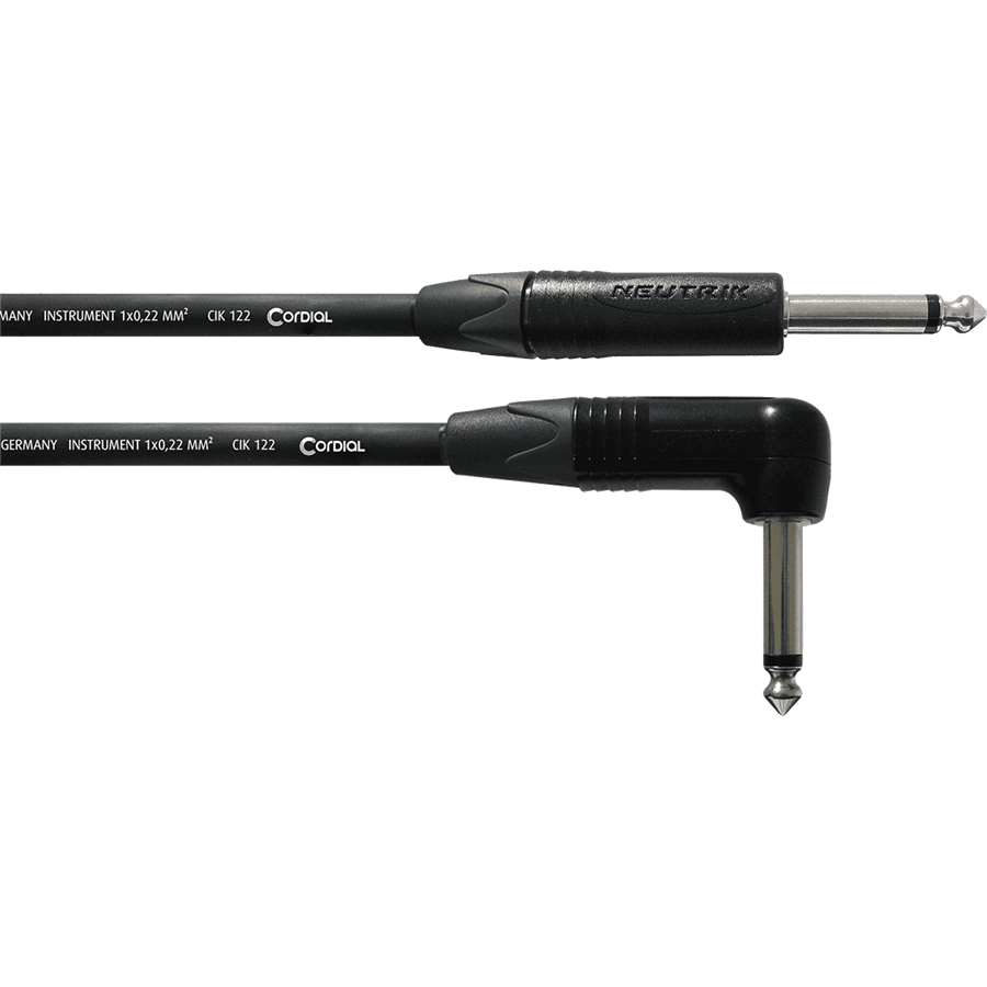 CPI 6 PR è il cavo assemblato per strumento della linea Select di Cordial con un connettore dritto e uno angolato, ideale per il collegamento della chitarra o del basso all'amplificatore e non solo. Affidabilità e lunga durata grazie al cavo Cordial CIK 122 e ai connettori Neutrik NP2X e NP2RX con cromatura velour.