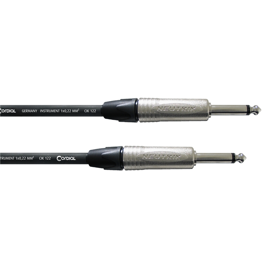 Cavo assemblato (con cavo Cordial CIK 122) per strumenti della linea Select della lunghezza di 6 metri di colore nero con 2 connettori jack TS da 1/4" Neutrik in nichel, ideale per il collegamento della chitarra o del basso all'amplificatore e non solo.