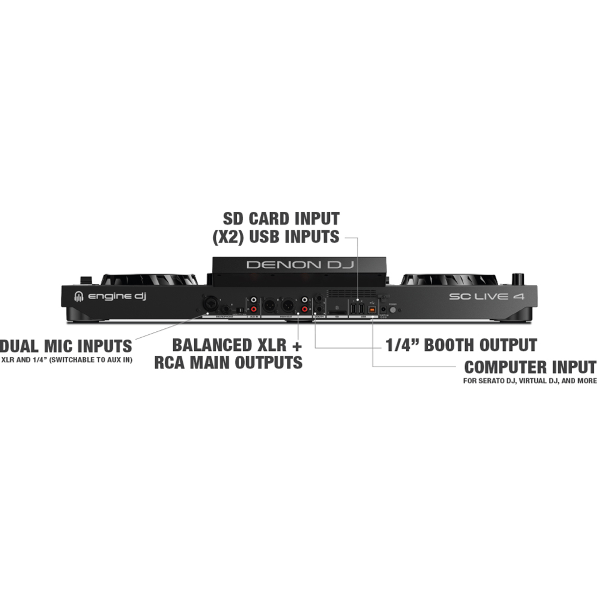 SC LIVE 4 di DENON DJ è una consolle standalone all-in-one, a 4 deck digitali, display multi-touch da 7" a colori, software interno engine dj os che consente l'analisi dei brani anche senza esportazione di playlist ed allo stesso tempo lettura di playlist in usb realizzate anche con rekordbox dj complete di hot cue e loop memorizzati. 8 pad performance con sezione sampler, 3 sezioni di effetti diversi: sweep fx, fx assegnabili per canale e touch fx, wifi integrate per servizi di streaming musicale, sezione lightning dedicata, ableton link, key sync, track preview, possibilità di utilizzo come midi controller con serato dj pro e virtual dj. a seguire ne elenchiamo le principali caratteristiche:SC LIVE 4 di DENON DJ è una consolle standalone all-in-one, a 4 deck digitali, display multi-touch da 7" a colori, software interno engine dj os che consente l'analisi dei brani anche senza esportazione di playlist ed allo stesso tempo lettura di playlist in usb realizzate anche con rekordbox dj complete di hot cue e loop memorizzati. 8 pad performance con sezione sampler, 3 sezioni di effetti diversi: sweep fx, fx assegnabili per canale e touch fx, wifi integrate per servizi di streaming musicale, sezione lightning dedicata, ableton link, key sync, track preview, possibilità di utilizzo come midi controller con serato dj pro e virtual dj.