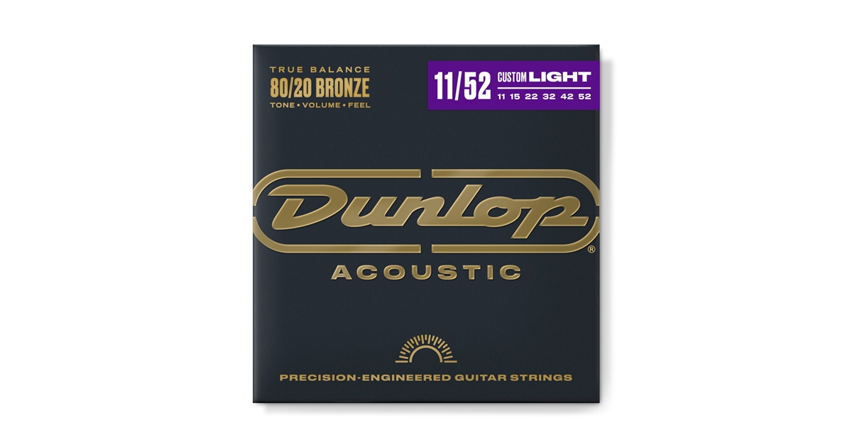DAB1152 80/20 Bronze è il set di corde 11-52 per chitarra acustica di casa Dunlop. Queste corde Medium Light hanno un suono brillante, chiaro ed espressivo.