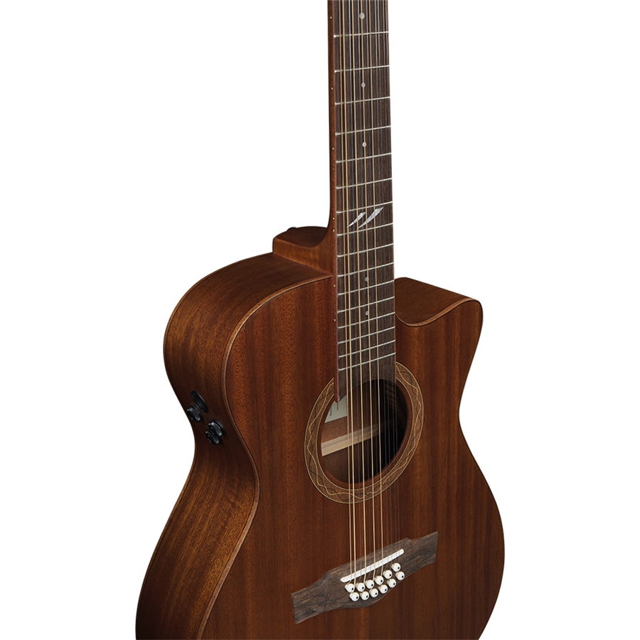 La DUO A200ce XII è la chitarra acustica elettrificata a 12 corde della serie "DUO" di casa Eko Guitars. Presenta top in Mogano Massello, fasce e fondo in Mogano laminato, manico in Mogano e tastiera in South American Roupanà. È caratterizzata dalla finitura satinata Open Pore su tutto il corpo, nut da 50mm e lunghezza della scala di 630mm. Con un ottimo rapporto prezzo/qualità, risulta ideale sia per il chitarrista amatoriale sia per il professionista che fa attività live e in studio di registrazione.