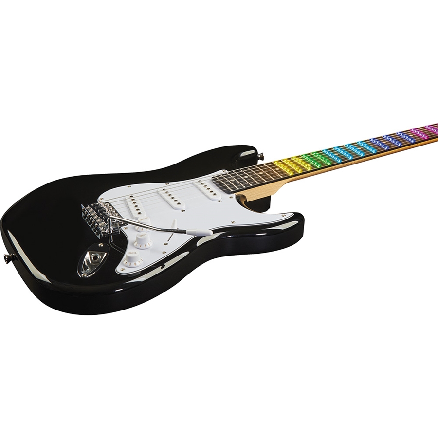 La ST-100 Black Visual Note è la chitarra elettrica della serie "Visual Note" di casa Eko Guitars con corpo in Pioppo, manico in Acero e tastiera in resina Eko WPC dotata di lamina LED Visual Note che si interfaccia con la APP dedicata. È equipaggiata con pickup Eko in configurazione S-S-S, controlli di Volume e due Toni, switch blade a 5 vie e ponte con leva tremolo. Nell'APP ci sono video lezioni, esercizi, accordatore, scale e arpeggi che vengono trasferiti in tempo reale direttamente sui LED della tastiera per guidare l'utente nell'apprendimento in modo divertente.