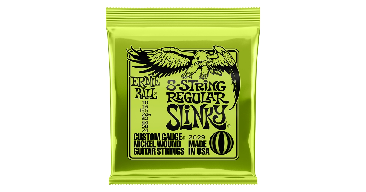 2629 Regular Slinky 8 è la muta di corde per chitarra elettrica a 8 corde di casa Ernie Ball con scalatura .010-.074. È pensata per il chitarrista che utilizza chitarre multiscala e che ama la classica sensazione Slinky abbinata ad un ottimo bilanciamento tra le corde. Perfette per generi hard rock e heavy metal.