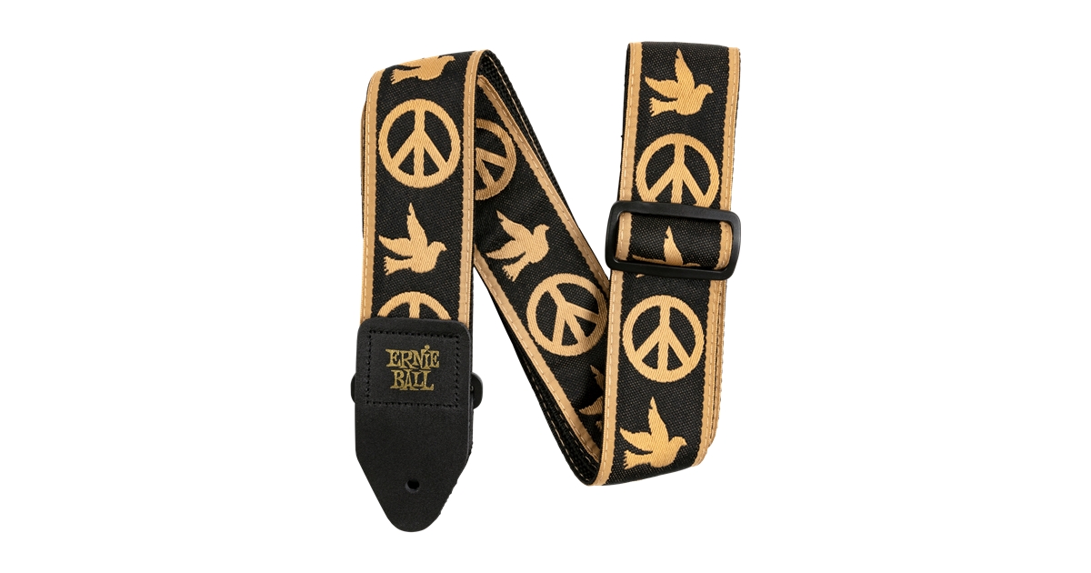 4613 è la tracolla di Ernie ball della serie Classic Jacquard nella colorazione Peace Love Dove. Caratterizzata dalle estremità in pelle ricamata con cinghia in polipropilene ultra resistente e confortevole, può essere regolata partendo da una lunghezza di 104 cm fino a 183 cm.