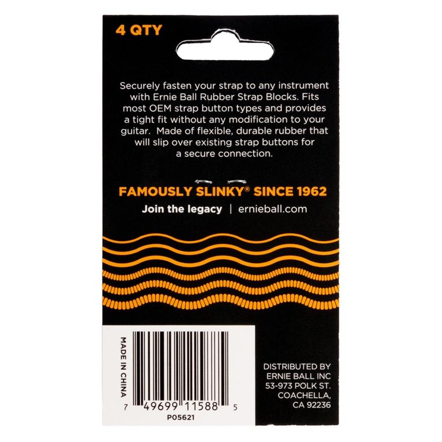 Il 5621 è il blocco in gomma color arancione di casa Ernie Ball progettato per fissare saldamente la tracolla ai pin del tuo strumento, chitarra o basso. Realizzato in gomma siliconica flessibile, si adatta a qualsiasi bottone per cinghia e può essere montato con estrema facilità e velocità.