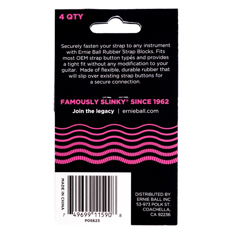 Il 5623 è il blocco in gomma color rosa di casa Ernie Ball progettato per fissare saldamente la tracolla ai pin del tuo strumento, chitarra o basso. Realizzato in gomma siliconica flessibile, si adatta a qualsiasi bottone per cinghia e può essere montato con estrema facilità e velocità.
