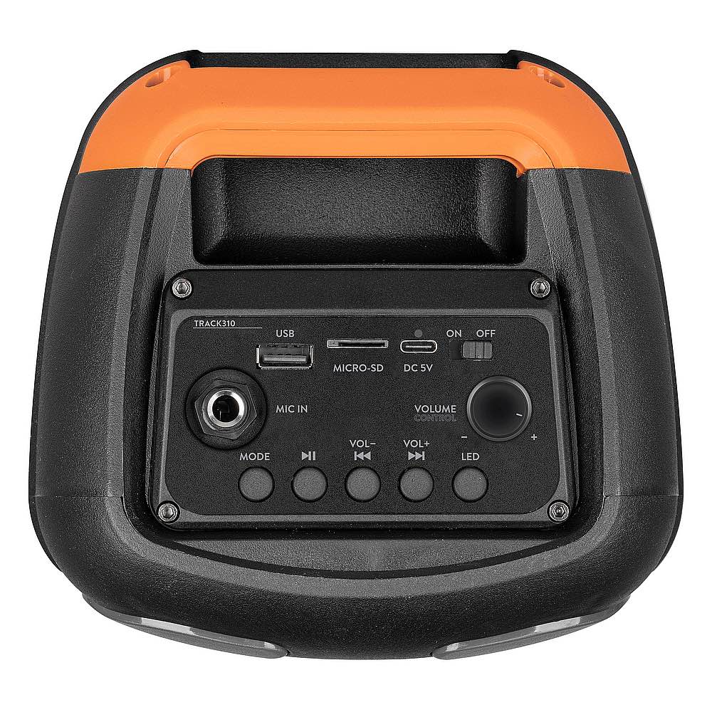 <p>Balla, canta e lasciati trasportare dalla musica! Ideale per le tue feste il Track310 è dotato di illuminazione LED nella parte anteriore per le tue feste a ritmo di musica. Grazie alla batteria ricaricabile integrata, al microfono in dotazione e alle numerose opzioni di input USB, scheda micro SD, BT streaming e connessione jack per microfono integrata, puoi cantare facilmente tutte le tue canzoni preferite. E’anche possibile collegare in modalità wireless due sistemi Track310 per creare un suono stereo ancora più potente. Ideale per l’intrattenimento domestico, il karaoke, le scuole, le feste o molte altre applicazioni.</p><ul><li>Altoparlante per feste con lettore multimediale USB/microSD</li><li>Spettacolo di luci multicolore a pannello intero</li><li>Potente amplificatore da 120 W</li><li>Altoparlanti da 4″</li><li>Tecnologia wireless BT per lo streaming audio</li><li>Luci LED commutabili (on/off)</li><li>Batteria integrata (autonomia fino a 8 ore)</li><li>Tempo di ricarica: 4 ore</li><li>Ingresso microfono (jack da 6,3 mm)</li><li>Accoppiamento stereo (collegamento ad altri Track310)</li><li>Incluso microfono e telecomando</li></ul><ul><li>Product colour Black</li><li>Playback options BT streaming, USB, MicroSD, FM radio, Microphone (input)</li><li>Input connections 6.3mm Jack, MicroSD, USB</li><li>Output power: Max 120W</li><li>Diameter woofer 2x 4″</li><li>Magnet type Ferrite</li><li>Battery 3.7V - 2.4Ah</li><li>Power supply 5V via USB</li><li>Dimensions (L x W x H) 165 x 155 x 405mm</li><li>Weight (kg) 1,78</li><li>Included accessories Handheld microphone (wired), USB cable</li><li>EAN Code</li><li>8715693347548</li><li>RSP Price</li><li>49.9500</li><li>RIP Price</li><li>46.0000</li><li>Brand</li><li></li><li>Product Sheet</li><li> </li><li>Movie</li><li></li><li>Active Images</li><li> </li><li>Disabled Images</li><li> </li><li>Software and files</li><li></li></ul>