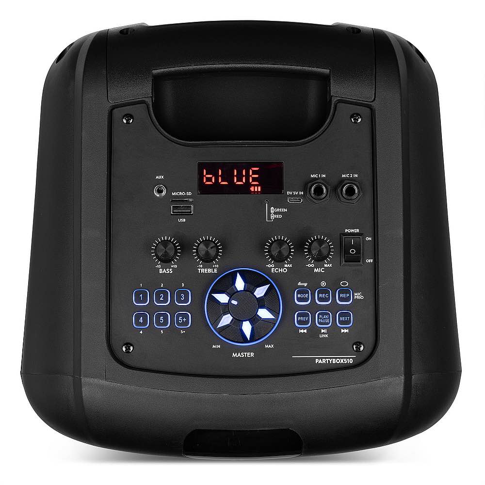 <p>Balla, canta e lasciati trasportare dalla musica! Ideale per le tue feste il Track510 è dotato di illuminazione LED nella parte anteriore per le tue feste a ritmo di musica. Grazie alla batteria ricaricabile integrata, al microfono in dotazione e alle numerose opzioni di input USB, scheda micro SD e connessione jack per microfono integrata, puoi cantare facilmente tutte le tue canzoni preferite. E’anche possibile collegare in modalità wireless due sistemi Track510 per creare un suono stereo ancora più potente. Ideale per l’intrattenimento domestico, il karaoke, le scuole, le feste o molte altre applicazioni.</p><ul><li>Altoparlante per feste con lettore multimediale USB/microSD</li><li>Spettacolo di luci multicolore a pannello intero</li><li>Potente amplificatore da 160 W</li><li>Funzione di registrazione</li><li>6 Effetti sonori speciali</li><li>2 woofer da 8″ + tweeter da 1″.</li><li>Tecnologia wireless BT 5.0 per lo streaming audio</li><li>Luci LED commutabili (on/off)</li><li>Batteria integrata (autonomia fino a 6 ore)</li><li>Tempo di ricarica: 4 ore</li><li>2x Ingresso microfono (jack da 6,3 mm)</li><li>Funzione eco</li><li>Ingresso ausiliario da 3,5 mm</li><li>Accoppiamento stereo (collegamento ad altri Track510)</li><li>Incluso 2 microfonos e telecomando</li></ul><ul><li>Product colour Black</li><li>Playback options BT streaming, USB, MicroSD, Line input, Microphone (input)</li><li>Input connections 3.5mm Jack, 6.3mm Jack, MicroSD, USB</li><li>Output power: Max 160W</li><li>Tweeter type Piezo</li><li>Diameter tweeter 1″</li><li>Diameter woofer 2x 8″</li><li>Magnet type Ferrite</li><li>Battery 7.4V - 3.6Ah</li><li>Power supply 100-240VAC 50/60Hz (5V USB)</li><li>Dimensions (L x W x H) 295 x 280 x 690mm</li><li>Weight (kg) 6,40</li><li>Included accessories Handheld microphone (wired), Remote control (wireless), Power adapter</li><li>EAN Code</li><li>8715693347555</li><li>RSP Price</li><li>159.9500</li><li>RIP Price</li><li>139.9000</li><li>Brand</li><li></li><li>Product Sheet</li><li> </li><li>Movie</li><li></li><li>Active Images</li><li> </li><li>Disabled Images</li><li></li><li>Software and files</li></ul>