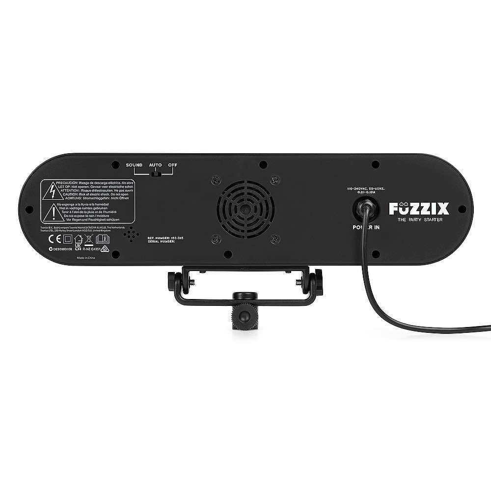 <p>Il Fuzzix Party Bar eleva l'atmosfera di ogni occasione a un livello ancora più alto! Le opzioni sono infinite, con il telecomando puoi cambiare innumerevoli colori, diversi effetti di luce e la loro velocità. Puoi anche scegliere tra uno spettacolo preprogrammato o per l'attivazione del suono tramite il microfono integrato. Questo Party Bar che include un semplice supporto per luci è esattamente ciò di cui hai bisogno per rendere la tua festa un successo!</p><ul><li>Party Bar con effetto wash, 2 sfere luminose, stroboscopio LED ed effetto doppio motivo</li><li>LED Wash: 7 LED RGB super luminosi</li><li>LED Jelly Ball: 6 LED RGB super luminosi</li><li>Effetto motivo rosso/verde</li><li>Stroboscopio LED UV/bianco</li><li>Modalità di riproduzione automatica e attivata dal suono</li><li>Portatile e facile da installare e utilizzare</li><li>Basso consumo energetico</li><li>Compreso supporto luce e telecomando</li><li>Leggero e perfetto per le feste</li></ul><ul><li>Product colour Black</li><li>Light source Single colour LED, 3-in-1 LED</li><li>Colours Red, Green, Blue</li><li>LED power (single LED) 1W, 3W</li><li>Quantity of LEDs 21</li><li>Illuminance 5541 lx @ 1m</li><li>Modes Automatic programs, Manual</li><li>Power consumption 0.215 - 0.183A</li><li>Power supply 100-240VAC 50/60Hz</li><li>Dimensions: Max height 1650mm</li><li>Dimensions (L x W x H) 50 x 380 x 155mm (excl. stand)</li><li>Weight (kg) 1,75</li></ul>