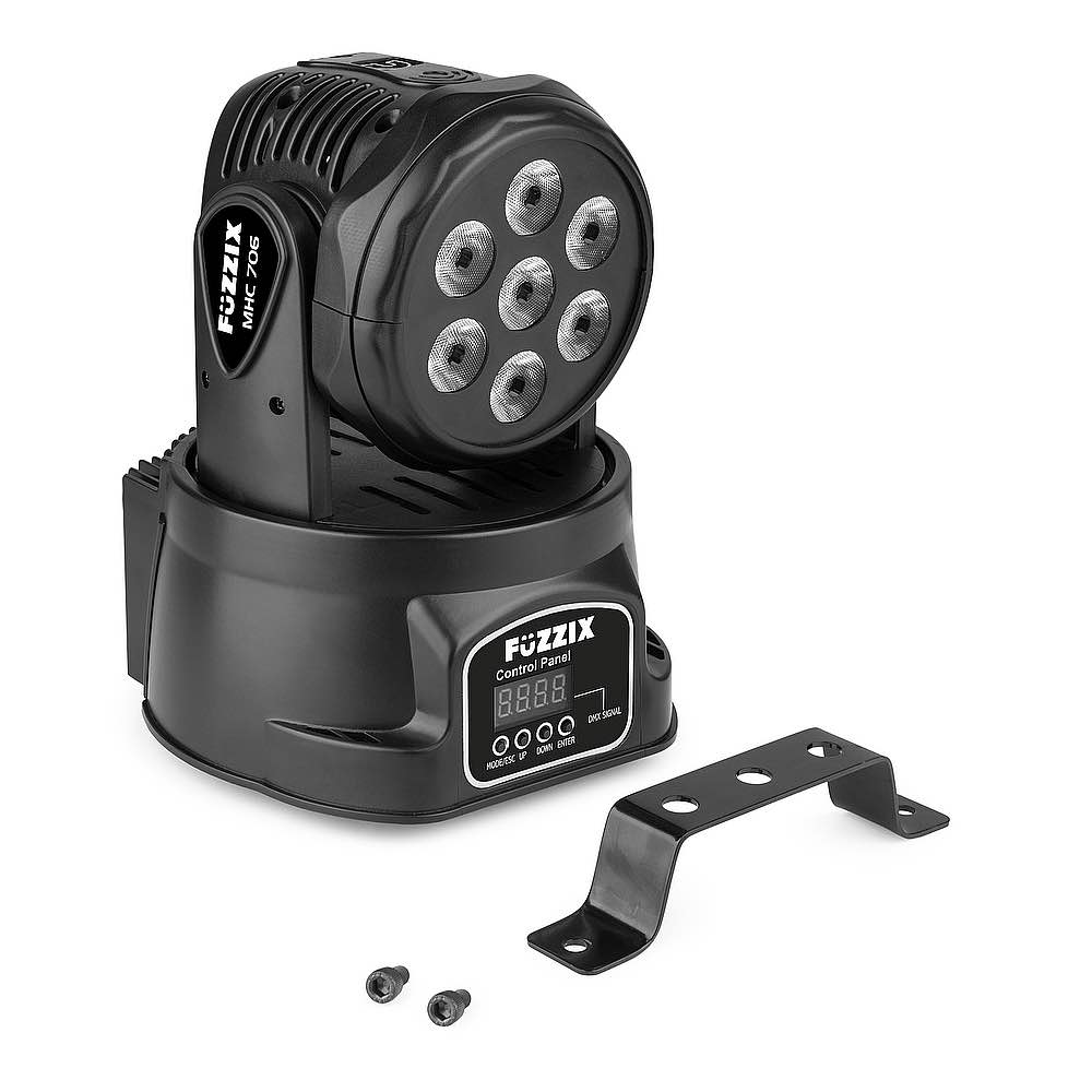 <p>Un sistema wash a testa mobile LED molto compatto per l'utilizzo in bar, club, con DJ mobili e sul palco. Basato su 7 LED 4-in-1 da 6W con un'emissione luminosa estremamente elevata per produrre uno spettacolo di luci ingegnoso con un mix di colori perfetto. Viene fornito con un angolo del fascio luminoso di 19°, modalità DMX a 9 e 14 canali, strobo a colori, dimmer elettronico ecc. Morbido ma estremamente veloce 540 Pan e 180 Tilt.</p><ul><li>7 LED 4 in 1 da 6 W ad alta potenza</li><li>Mix colori RGBW</li><li>Modalità DMX a 9 o 14 canali</li><li>Velocità strobo regolabile</li><li>Dimmer 0-100%</li><li>Modalità DMX e stand-alone</li><li>Funzione Master / Slave</li><li>Attivazione sonora</li><li>Show preprogrammati</li><li>Display a LED e pannello di controllo</li><li>Ingresso / uscita DMX tramite XLR a 3 pin</li></ul><ul><li>Light source 4-in-1 LED</li><li>LED colours Red, Green, Blue, White</li><li>LED power (single LED) 6W</li><li>Quantity of LEDs 7</li><li>Beam angle 19°</li><li>Field angle 33°</li><li>Illuminance 4.700 lx @ 1m</li><li>Flash rate per second 1 - 20Hz</li><li>Modes Automatic programs, DMX, Master/Slave</li><li>DMX channels 9, 14</li><li>DMX connection 3-pin XLR</li><li>Display LED</li><li>Cooling Temperature controlled fan</li><li>Power plug IEC</li><li>Power consumption 0.61 - 0.31A</li><li>Power supply 100-240VAC 50/60Hz</li><li>Dimensions (L x W x H) 173 x 180 x 240mm</li><li>Weight 1,65</li><li>Included accessories Mounting bracket, Power cable</li></ul>