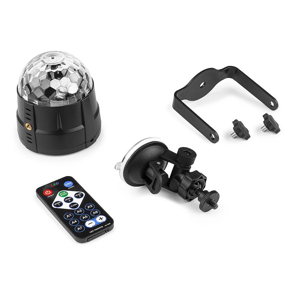<p>Scopri il potere della luce con la luce da discoteca multicolore controllata dalla musica Tornado. Questa straordinaria meraviglia dell'illuminazione crea un indimenticabile effetto di luce rotante che trasformerà qualsiasi luogo in uno spettacolo accattivante. Per un'esperienza ancora più coinvolgente, combina il Tornado con una macchina del fumo e osserva i colori vorticosi fondersi magicamente con la nebbia, creando un'atmosfera surreale che trasporta il tuo pubblico in un mondo pieno di magia.</p><ul><li>Luce da discoteca per feste con fasci rotanti colorati</li><li>LED ad alta luminosità a lunga durata</li><li>Colori: Rosso, Verde et Blu</li><li>Modalità attiva automatica e audio</li><li>Telecomando IR</li><li>Comprese staffe diverse</li></ul><ul><li>Product colour Black</li><li>Light source Single colour LED, 4-in-1 LED</li><li>LED colours Red, Green, Blue, White</li><li>LED power (single LED) 2W</li><li>Quantity of LEDs 4</li><li>LED power: Strobe 1W</li><li>Quantity of strobe LEDs 1</li><li>Laser Red 10mW @ 650nm</li><li>Laser Green 5mW @ 532nm</li><li>Modes Automatic programs, Manual</li><li>Power consumption 0.077 - 0.041A</li><li>Power supply 5V via USB</li><li>Included accessories Remote control (wireless), USB cable</li><li>Dimensions (L x W x H) 130 x 130 x 110mm</li><li>Weight 0,45</li></ul>