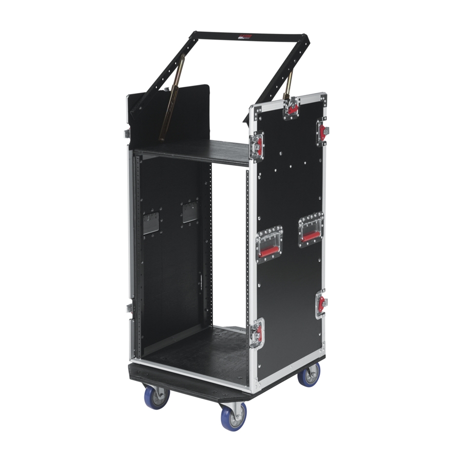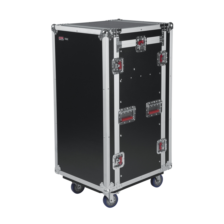 La Gator G-TOUR 10X16 PU è un flight case da 16 unità rack nella parte inferiore e 10 unità rack nella parte superiore a scomparsa ideale per console rack: questa parte consente varie angolazioni, e rimane piatta durante il trasporto. Questo flight case è progettata per un utilizzo professionale sui palchi, ideale quindi per service e produzioni. La robusta costruzione in compensato da 9 mm con esterno laminato protegge i rack durante il trasporto, e le maniglie a molla facilitano il sollevamento per caricare il flight case sul palco o su un camion. Due delle robuste ruote industriali da 4" sono bloccabili per evitare movimenti sul palco. Il profilo è realizzato in alluminio. Le guide rack anteriori e posteriori hanno uno spessore di 3.2 mm e il case ospita unità rack con spessore fino a 19". Le chiusure a farfalla rosse assicurano il coperchio al corpo.