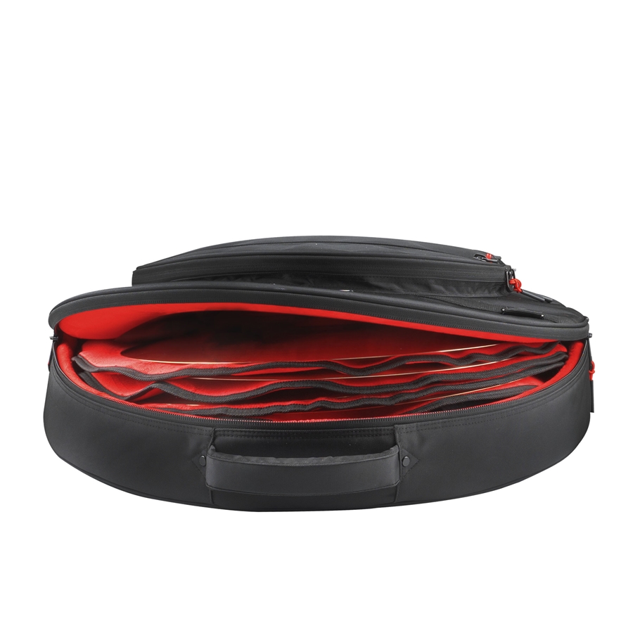 La borsa GP-ICON-CYM24 della serie Icon offre una protezione robusta e praticità per batteristi che necessitano di trasportare piatti di grandi dimensioni. Con un esterno in resistente nylon nero 1000D e una base rinforzata, protegge i piatti da graffi, urti e condizioni atmosferiche difficili. L'interno in micro-velvet rosso assicura una protezione extra contro abrasioni e danni.