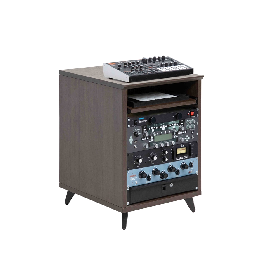 GFW-ELITEDESKRK-BRN è un rack studio 10U in noce scuro progettato per studi di registrazione e professionisti dell’audio che necessitano di un supporto versatile per preamplificatori ed effetti.