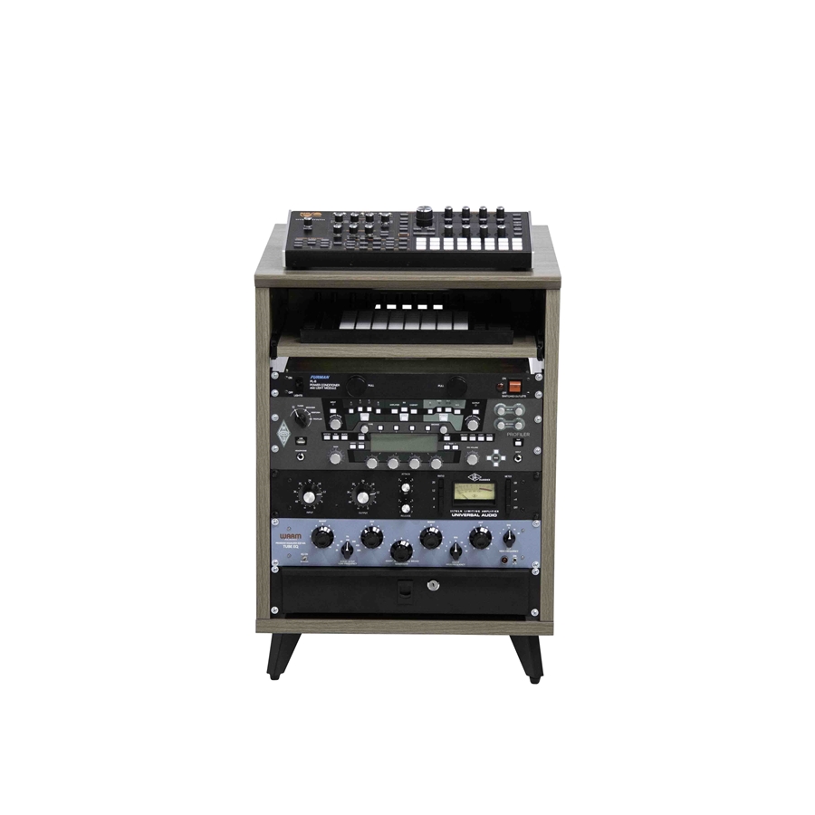 GFW-ELITEDESKRK-GRY è un rack studio 10U in grigio driftwood progettato per studi di registrazione e professionisti dell’audio che necessitano di un supporto versatile per preamplificatori ed effetti.