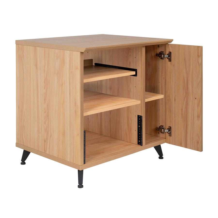 Il mobile rack GFW-ELITESIDECAR-MPL combina robustezza, stile e funzionalità in un unico prodotto versatile. Realizzato con una struttura in legno robusto e gambe in metallo, è rifinito con una colorazione acero naturale opaca, perfetta per integrarsi con qualsiasi arredamento. Con spazio configurabile da 4U, 8U o 12U, è ideale per ospitare preamplificatori, processori effetti, giradischi e altri accessori audio. Il piano superiore offre spazio per interfacce audio o piccoli mixer, mentre il vano inferiore, dotato di ripiani regolabili e sportello soft-close, garantisce un'organizzazione ottimale. Inoltre, i piedini regolabili e le ruote rimovibili permettono un utilizzo flessibile anche su superfici irregolari.