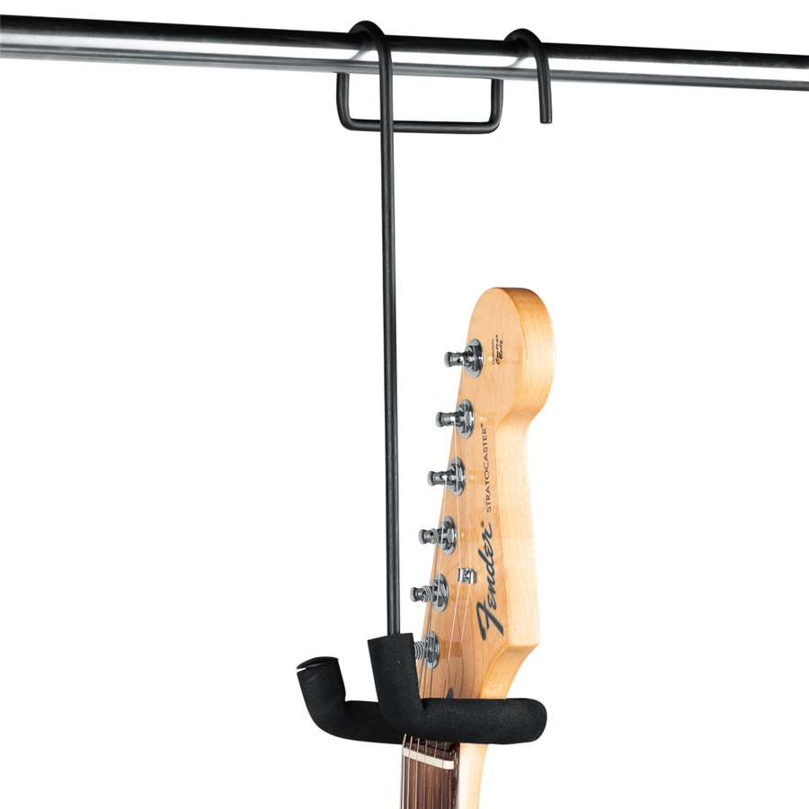 Progettato per agganciarsi direttamente a una barra per abiti con diametro di 32 mm, questo supporto permette di appendere in sicurezza chitarre elettriche, acustiche e bassi all’interno dell’armadio. Il gancio con rivestimento in gomma è dotato di terminali in plastica morbida che proteggono la paletta e il manico da graffi e urti. La struttura in acciaio con finitura nera opaca garantisce una tenuta stabile e durevole. Ideale per strumenti con manici larghi fino a 51 mm, è compatibile con la maggior parte delle finiture in poliuretano, ma non è consigliato per strumenti con verniciatura vintage o laccata.