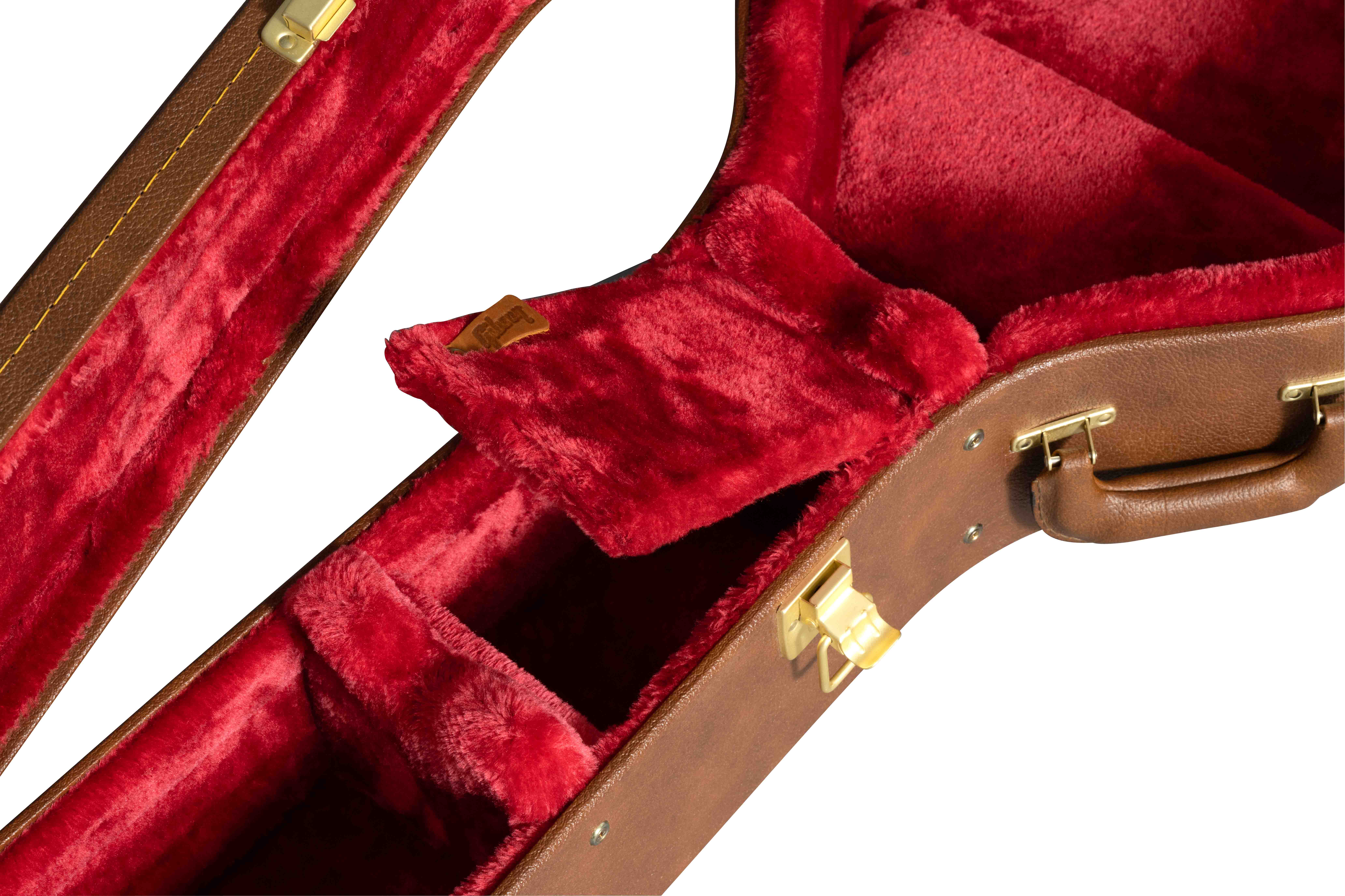 La ASDNCASE-ORG Original Hardshell Case Dreadnought è la custodia rigida sagomata per chitarra acustica in formato Dreadnought della serie Gibson Original. L'interno è rivestito in tessuto felpato rosso, e presenta un comparto per riporre gli accessori. Colorazione Brown