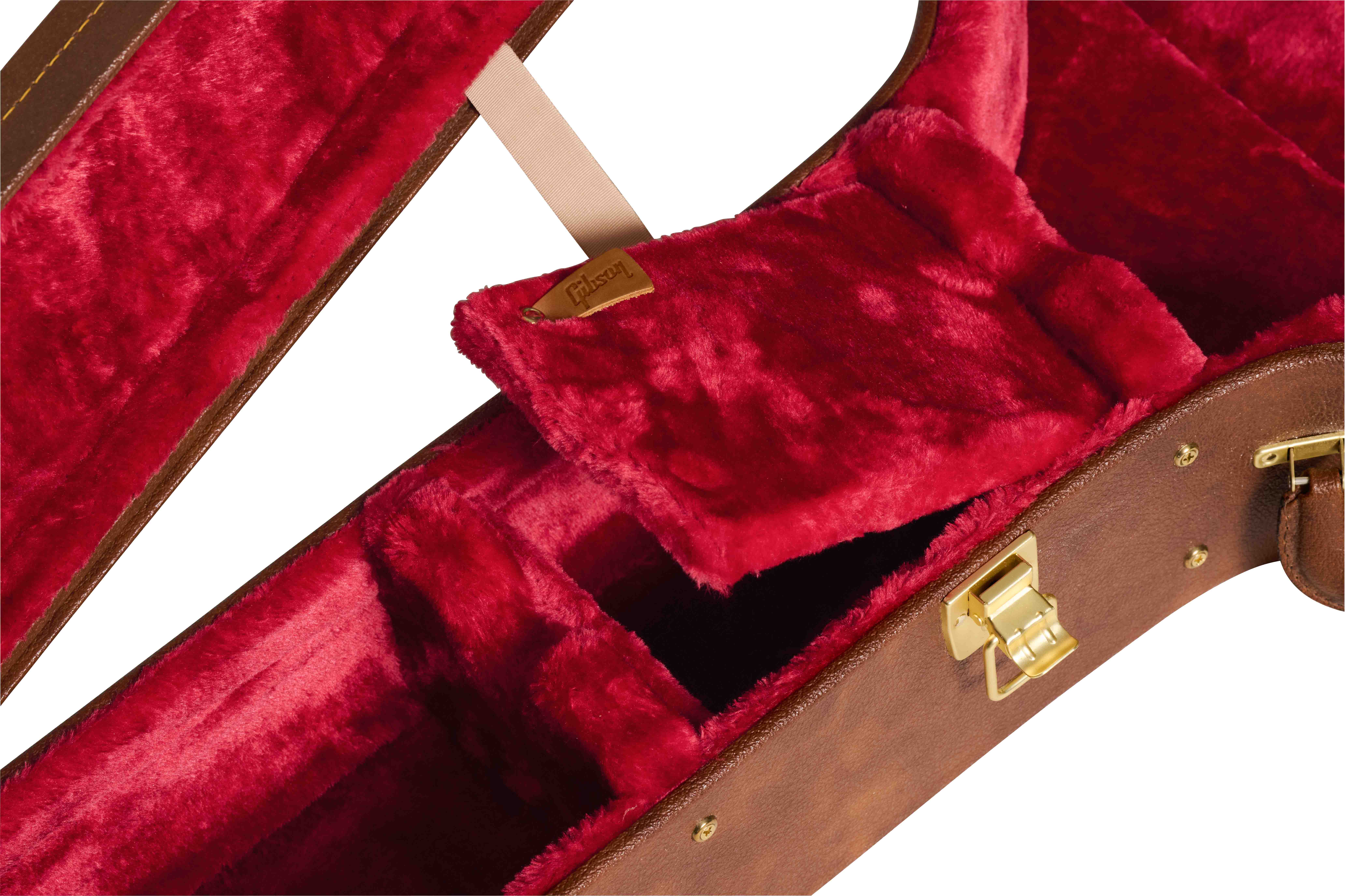 La ASJ200CASE-ORG Original Hardshell Case SJ-200 è la custodia rigida sagomata per chitarra acustica SJ-200 della serie Gibson Original. L'interno è rivestito in tessuto felpato rosso, e presenta un comparto per riporre gli accessori. Colorazione Brown