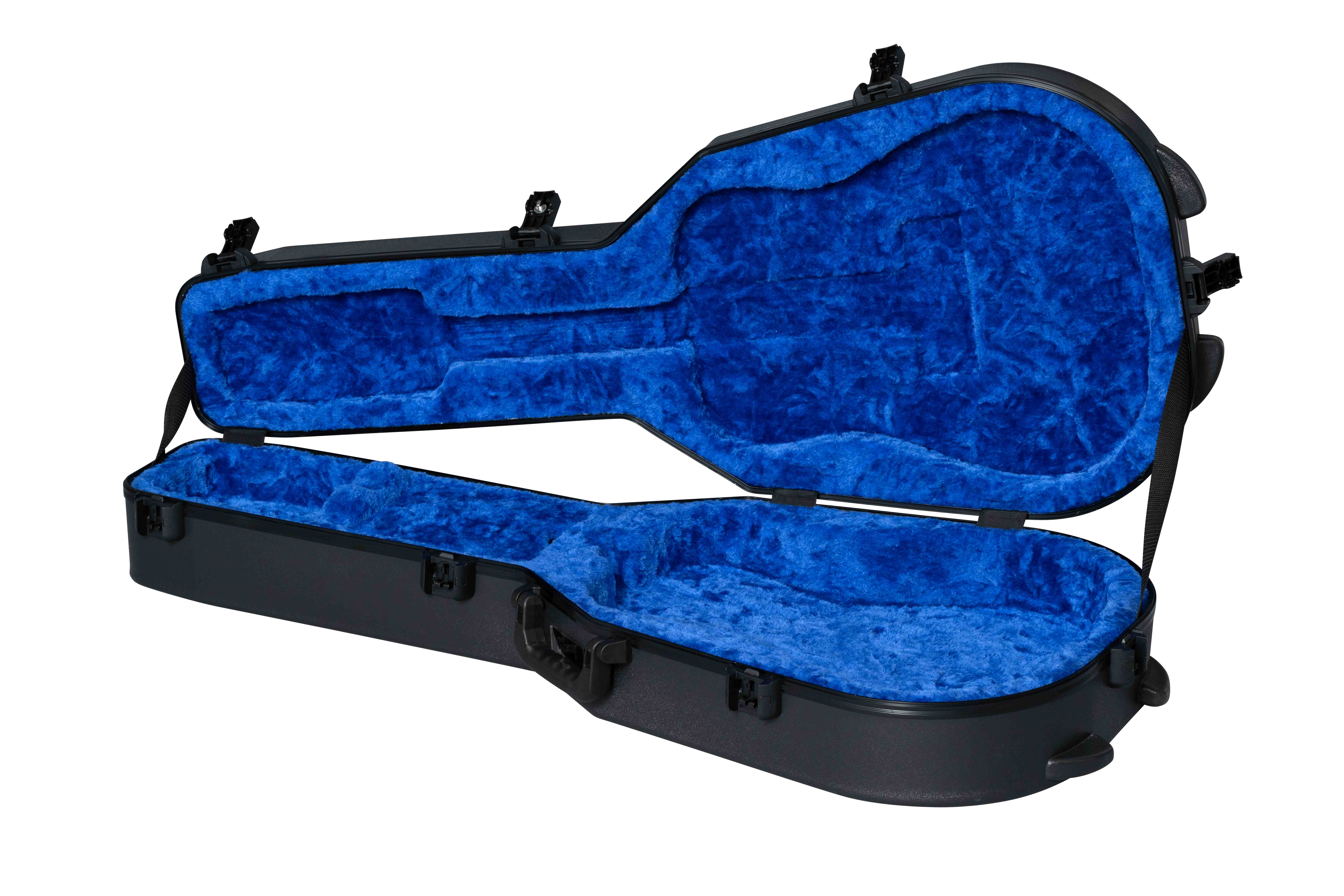 Ispirate al design delle custodie vintage Gibson "chainsaw" degli anni '70, le custodie rigide della serie Deluxe Protector presentano un robusto guscio in polietilene, maniglie ergonomiche con impugnatura morbida e componenti con finitura nera verniciata a polvere. L'interno è in morbido peluche di colore blu, con un comparto per riporre gli accessori. La ASPRCASE-DN è dotata di quattro robuste chiusure, con una serratura sulla cerniera centrale approvata dal sistema TSA. La custodia è approvata ATA (Air Transport Association). Progettata per chitarre acustiche in formato dreadnought.