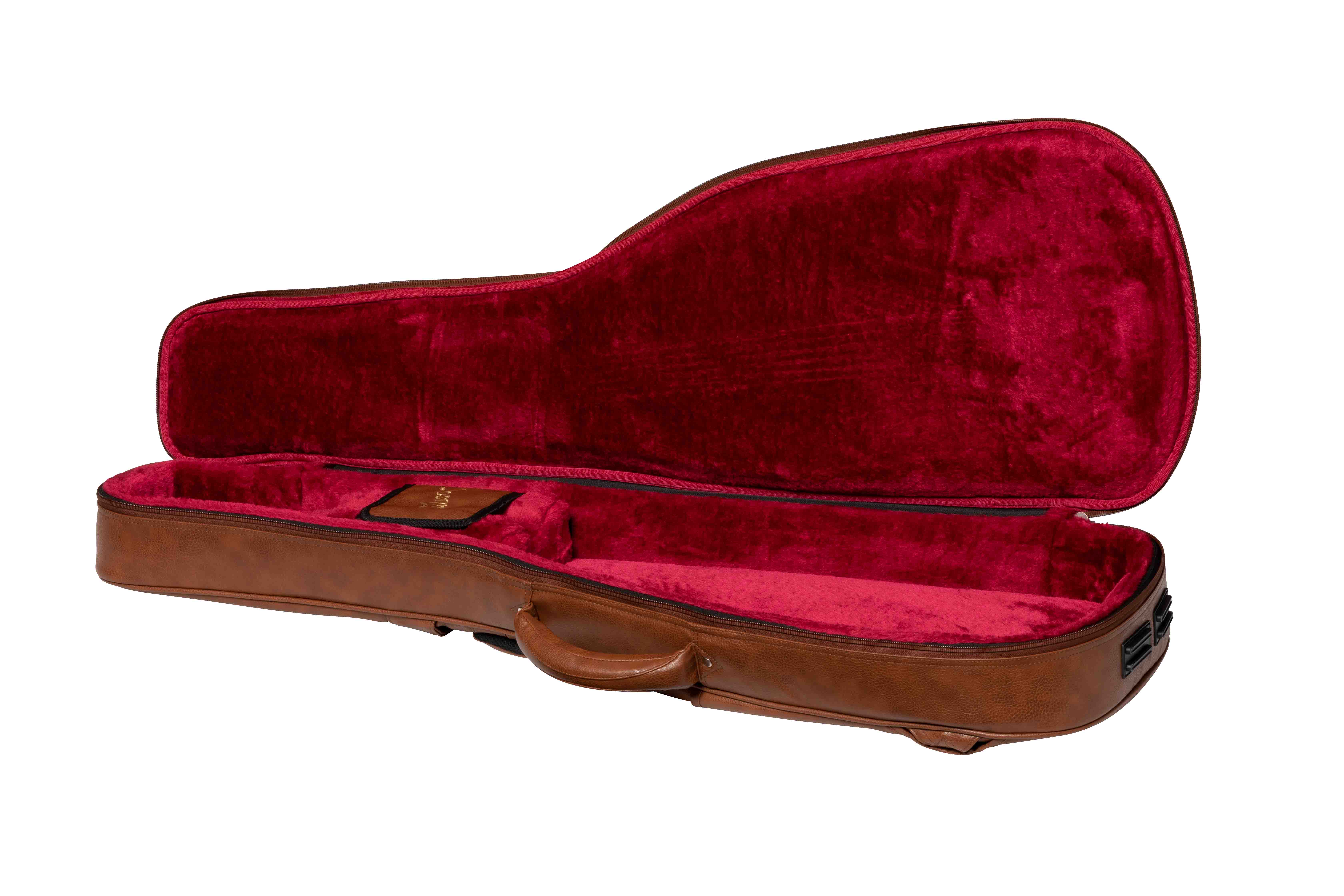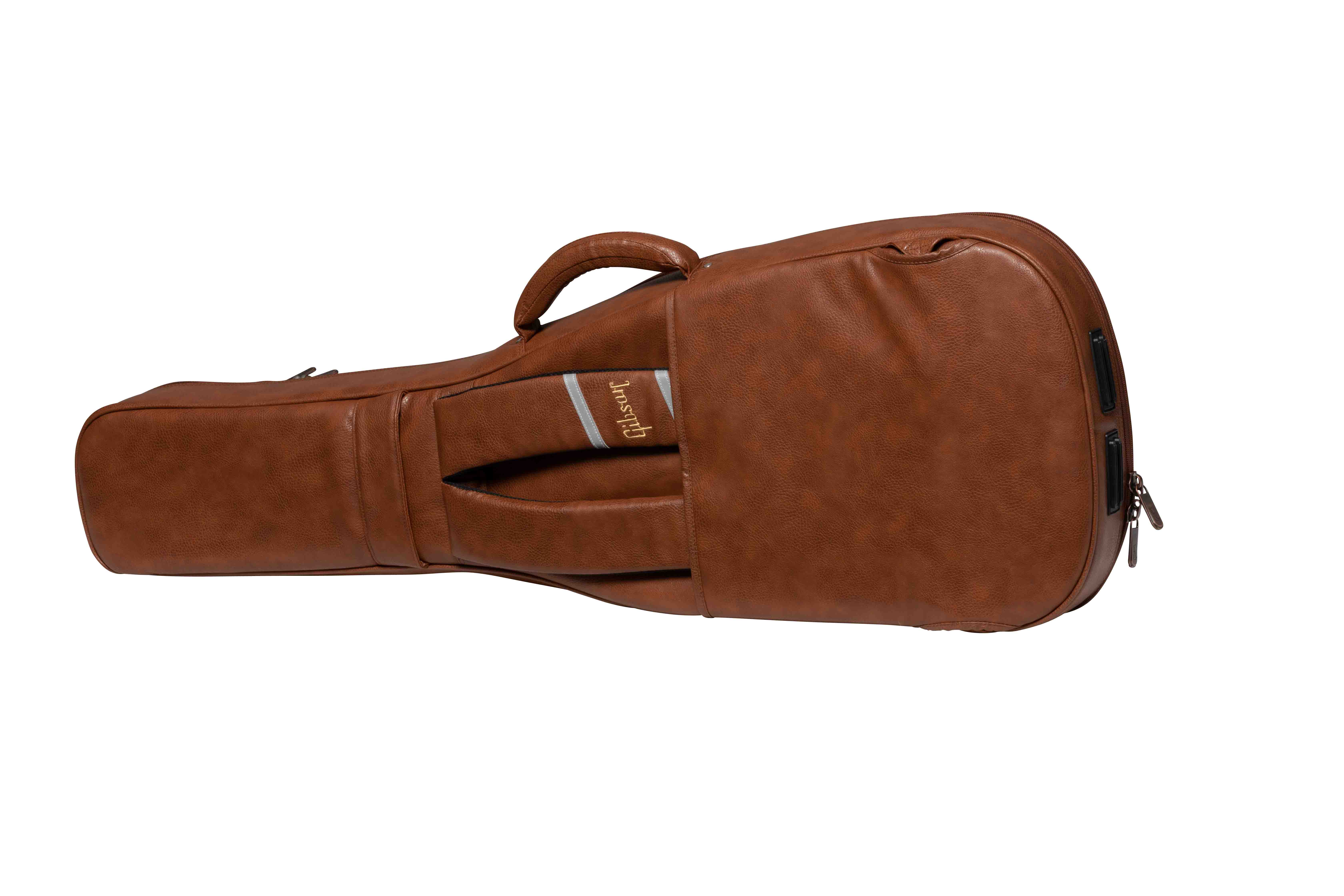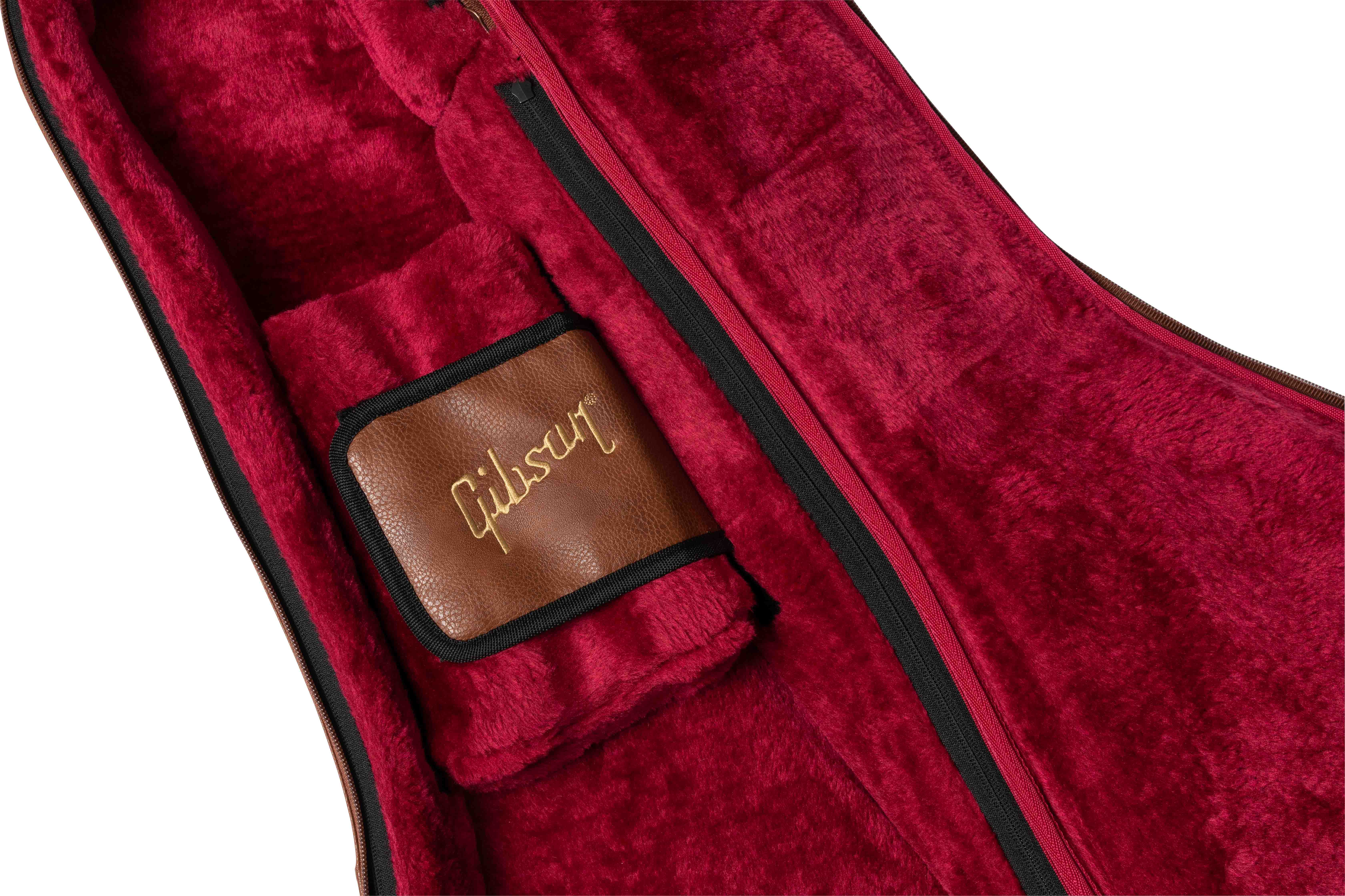 Le custodie morbide della serie Premium di Gibson Accessories vengono realizzate con un esterno in robusto vinile, mentre la fodera interna è in tessuto felpato e aiuta a mantenere al sicuro lo strumento. La ASSFCASE-BRN è dotata di due comparti per riporre gli accessori: un'ampia tasca frontale e un'altra con organizer posizionata in alto nella parte della paletta. La maniglia imbottita assicura una presa comoda, mentre la seconda maniglia sul retro offre una facile manovrabilità. Le due cinghie possono essere sganciate e nascoste nell'apposita tasca. Progettata per chitarre elettriche modelli Les Paul e SG.