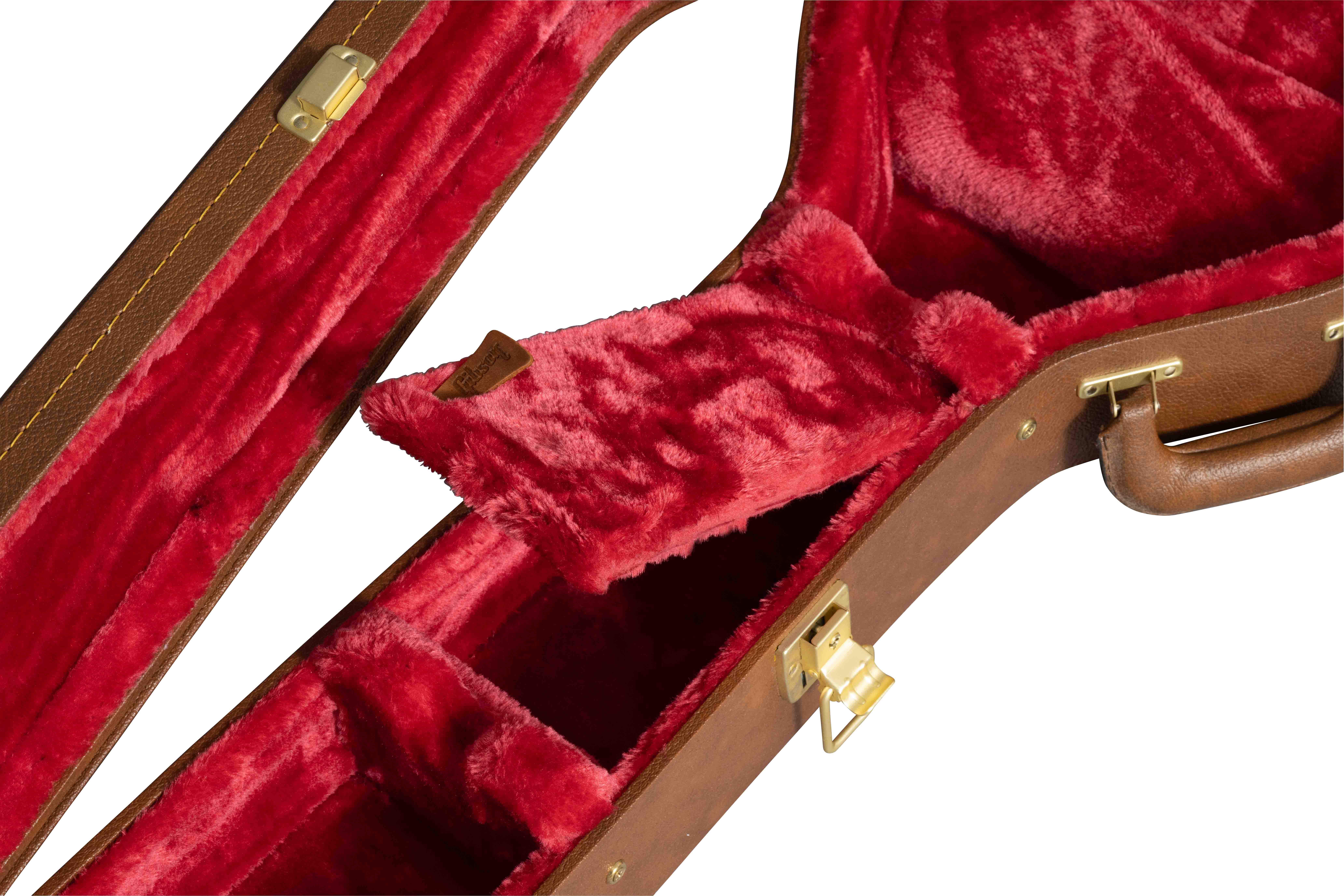 La ASSGCASE-ORG Original Hardshell Case SG è la custodia rigida sagomata per chitarra elettrica modello SG della serie Gibson Original. L'interno è rivestito in tessuto felpato rosso, e presenta un comparto per riporre gli accessori.