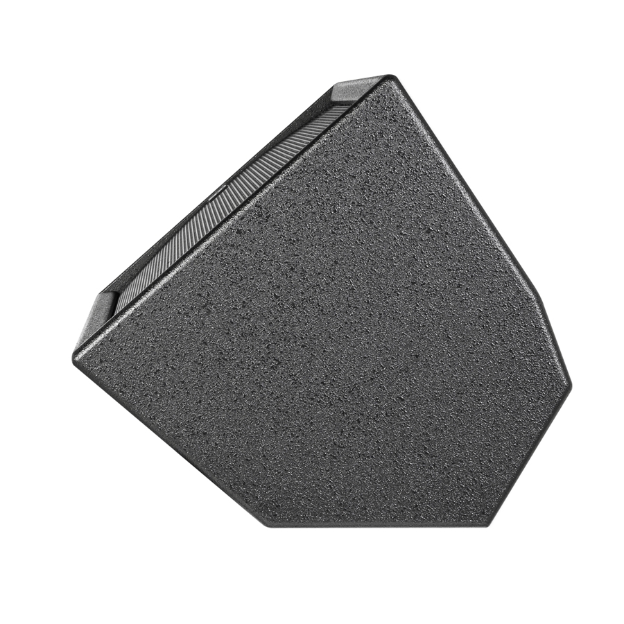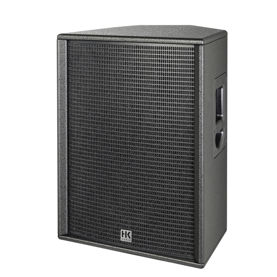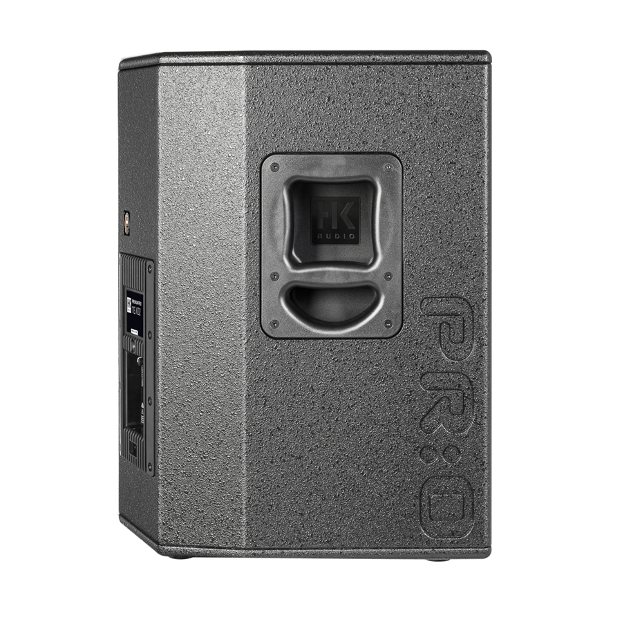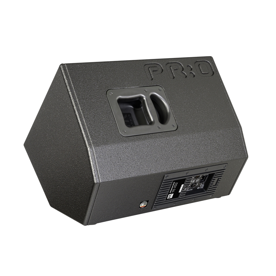 PR:O 115 XD2 è un diffusore attivo in MDF nero con griglia protettiva in metallo con driver da 15" e tweeter da 1", amplificatore integrato da 1200W in classe D con mixer integrato. Versione "Wedge" utilizzabile anche come monitor