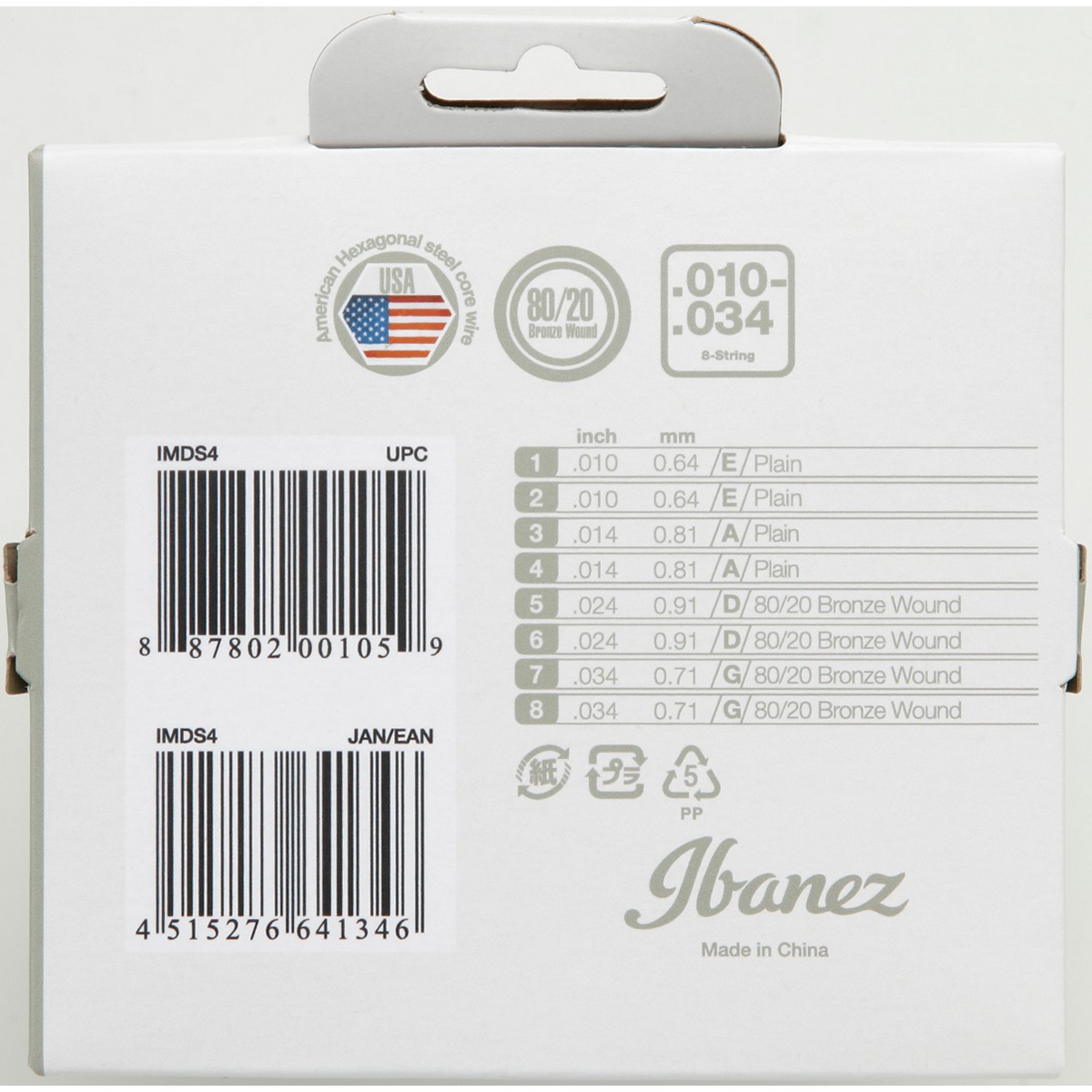 Muta di 8 corde in per mandolino - Avvolgitura in bronzo 80/20 - Scalatura 2x .010/2x .014/2x .024/2x .034