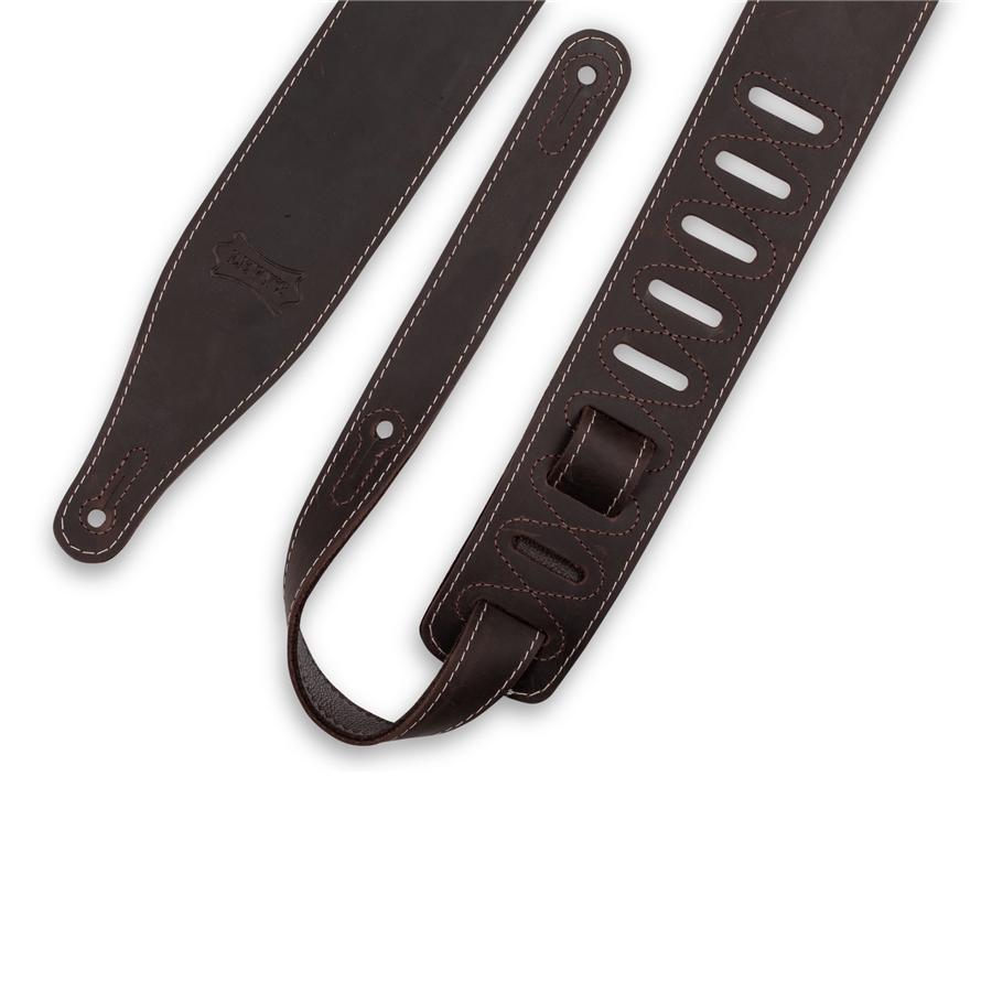 La M17BAS-DBR è la tracolla di casa Levy's realizzata in pelle morbida dal look vintage e invecchiato, con una lunghezza regolabile da 48" (129.2 cm) a 54.5" (141 cm) con regolazione Ladder Style Feed-Thru. Colorazione Dark Brown.