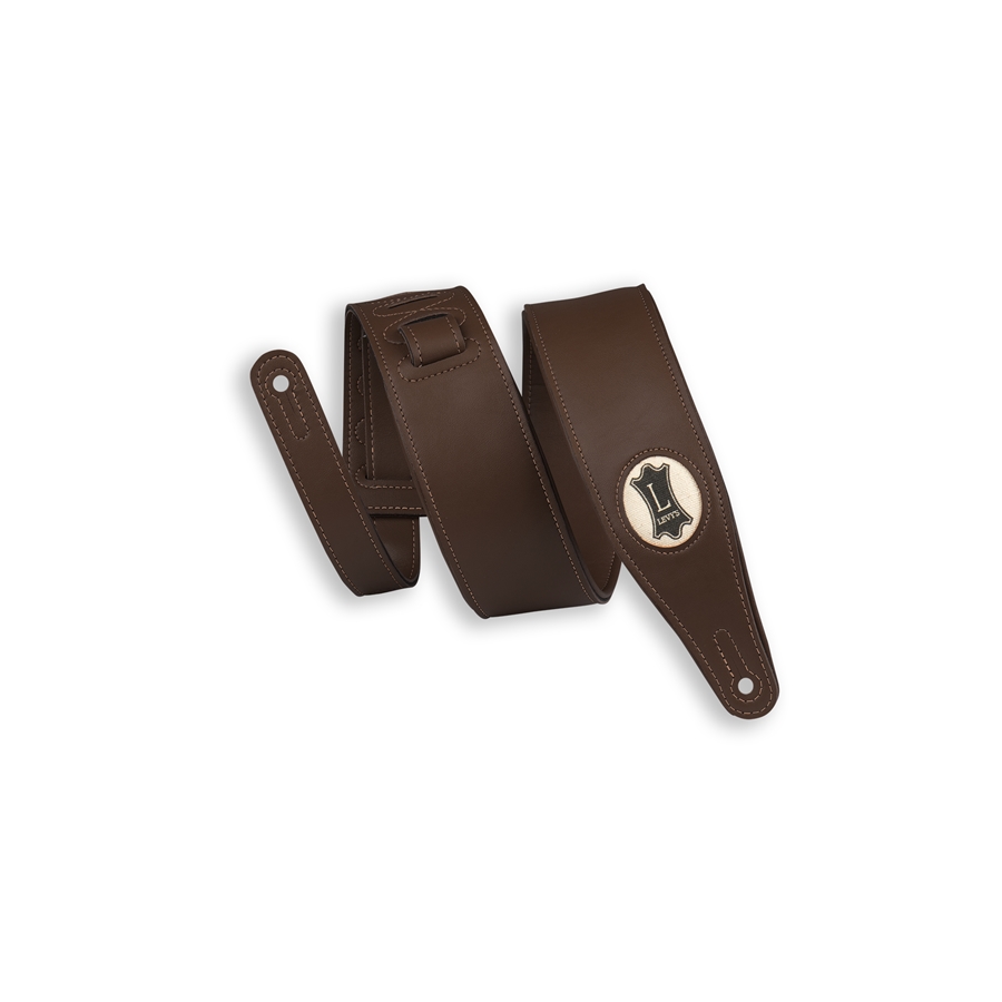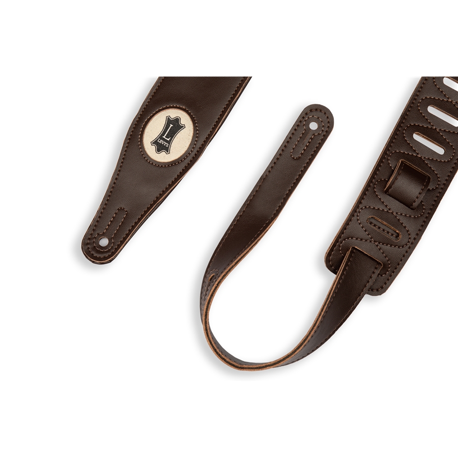 La M17VGN-DBR è una tracolla imbottita realizzata in ecopelle con tecniche di produzione ecologiche. Nel terminale presenta il logo Levy's in canapa. Questa tracolla ha uno spessore di 2 1/2" (6.35 cm) ed è regolabile fino a 54 1/2" (138.43 cm). Colorazione Dark Brown.