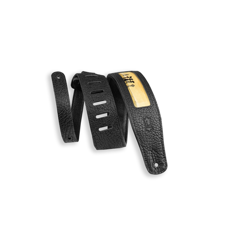 La M26CAL-001 è la tracolla in pelle con finestre con stampa di design Calaca Mariachi di casa Levy's. Larghezza 2 1/2" (6.35) cm, regolabile fino a 52" (132 cm). Colorazione Black.