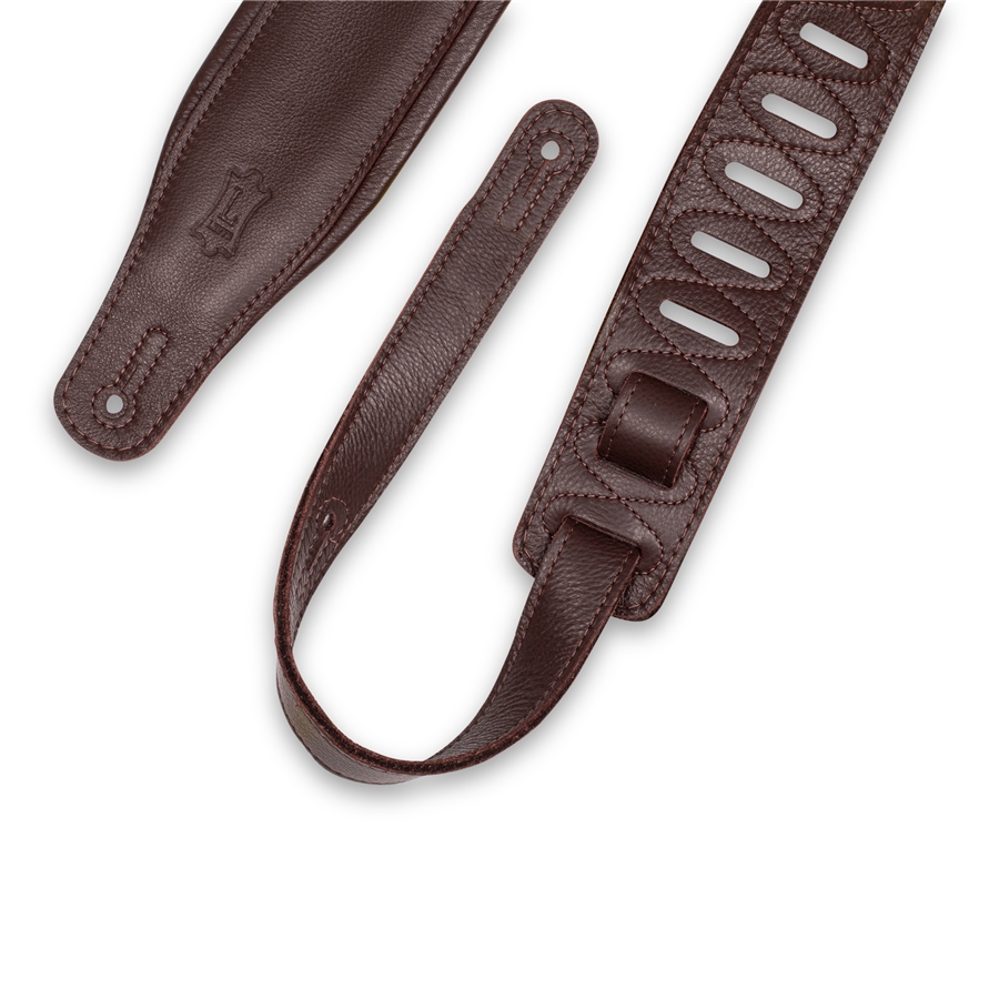 La M26GP-DBR-DBR è la tracolla per chitarra e basso da 3 1/4" (8.25 cm) di casa Levy's realizzata in pelle imbottita, regolabile da 37" (94 cm) a 51" (129.5 cm). Colorazione Dark Brown con retro Dark Brown.
