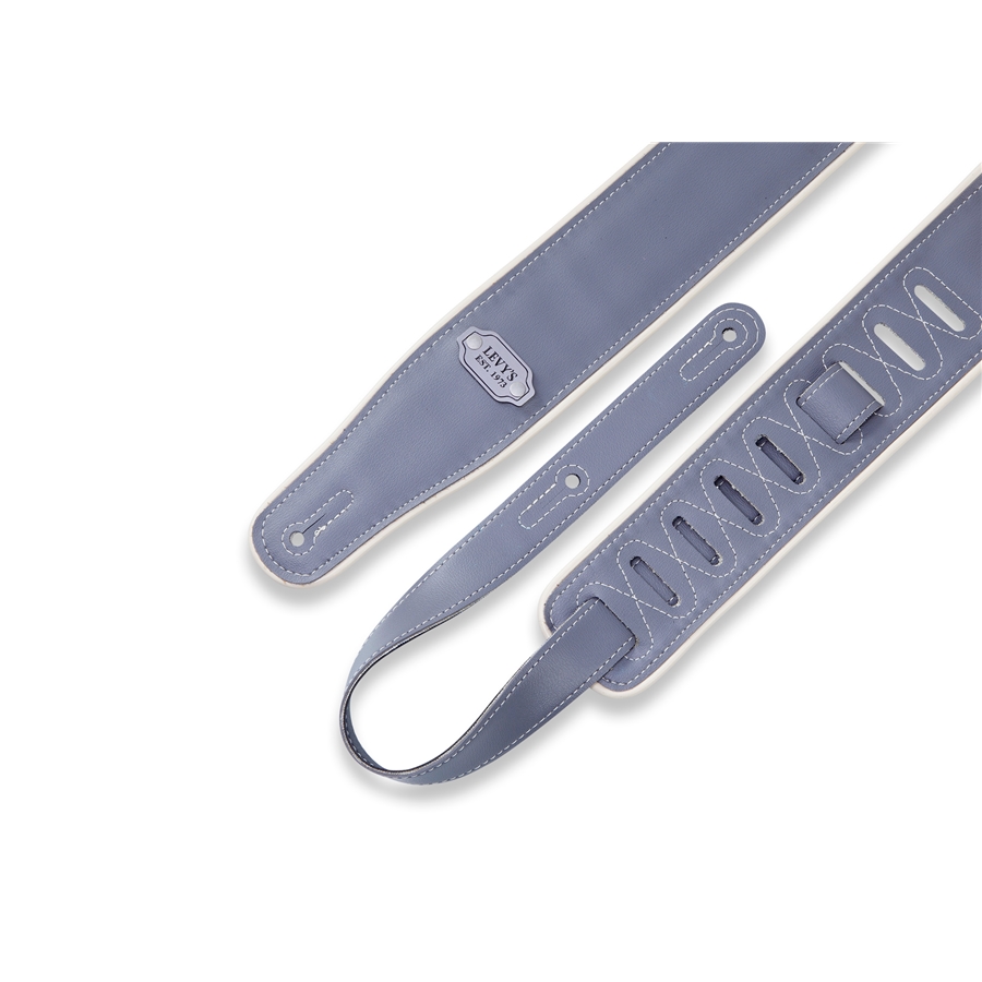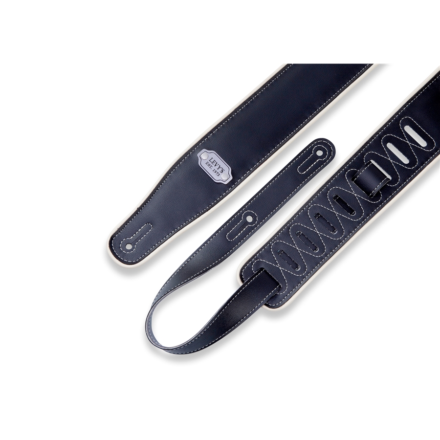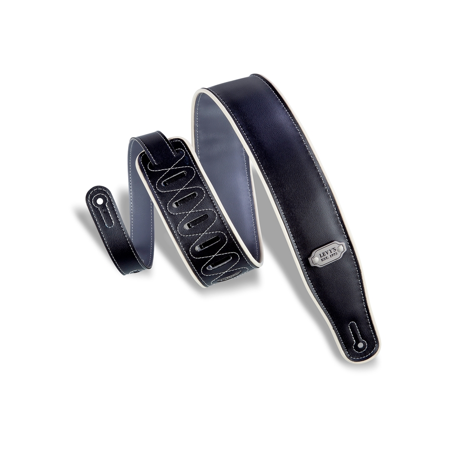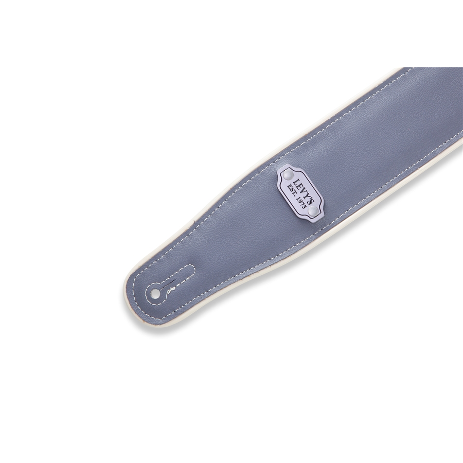La M26VCP-BLK_GRY è la tracolla per chitarra in vinile da 2 3/4" (6.98 cm) di casa Levy's, con bordo color crema e targhetta in metallo con logo. È regolabile fino a 56" (142.24 cm). Colorazione Black da un lato e Grey dall'altro.