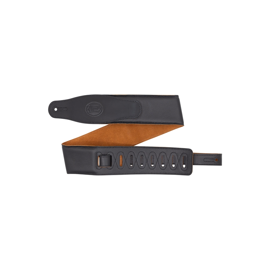 La MGS83CS-BLK-HNY è una tracolla in pelle imbottita con retro in pelle scamosciata da 2 1/2" (6.35 cm) di casa Levy's, con porta plettri sul terminale. È regolabile da 48" (121.92 cm) fino a 55" (139.7 cm). Colorazione Black con retro Honey.