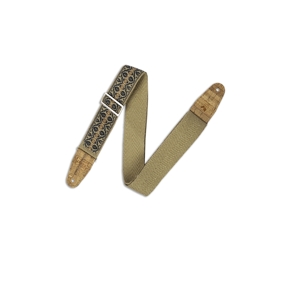 La MH8P-007 è la tracolla in canapa naturale con terminali in sughero a due strati di casa Levy's, larga 2" (5.08 cm) e regolabile fino a 62" (157.48 cm). Stampa Berry and Taupe.