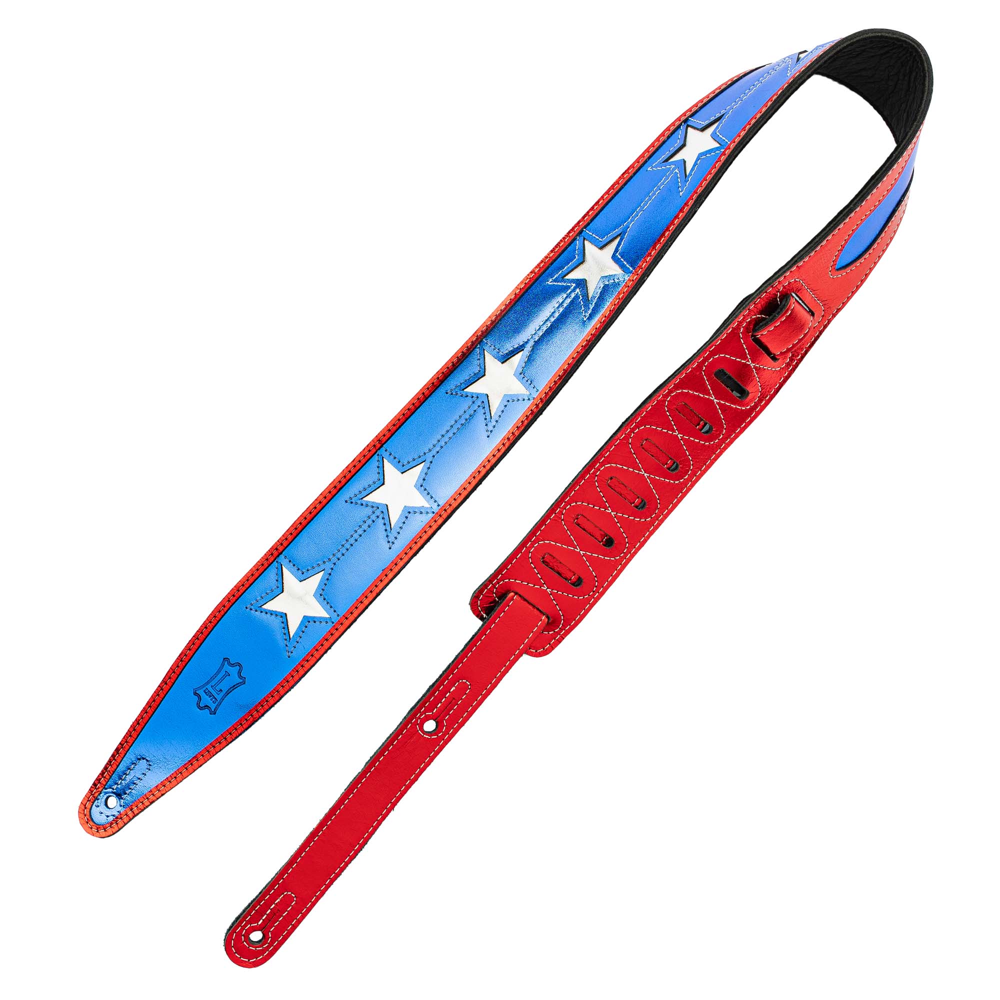La MJH317-001 è la tracolla in pelle della serie Icon, realizzata da Levy's in collaborazione con l'artista Jodi Head. Questa serie combina materiali pregiati con design ispirati a un decennio creativo, gli anni '70. Con una larghezza di 2.5" (6.35 cm), ha una lunghezza regolabile da 48" (122 cm) a 55.5" (141 cm). Colorazione The Daredevil.