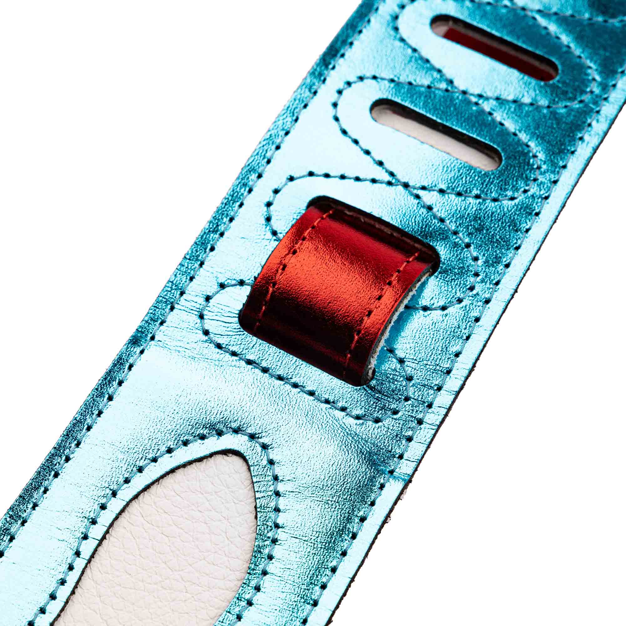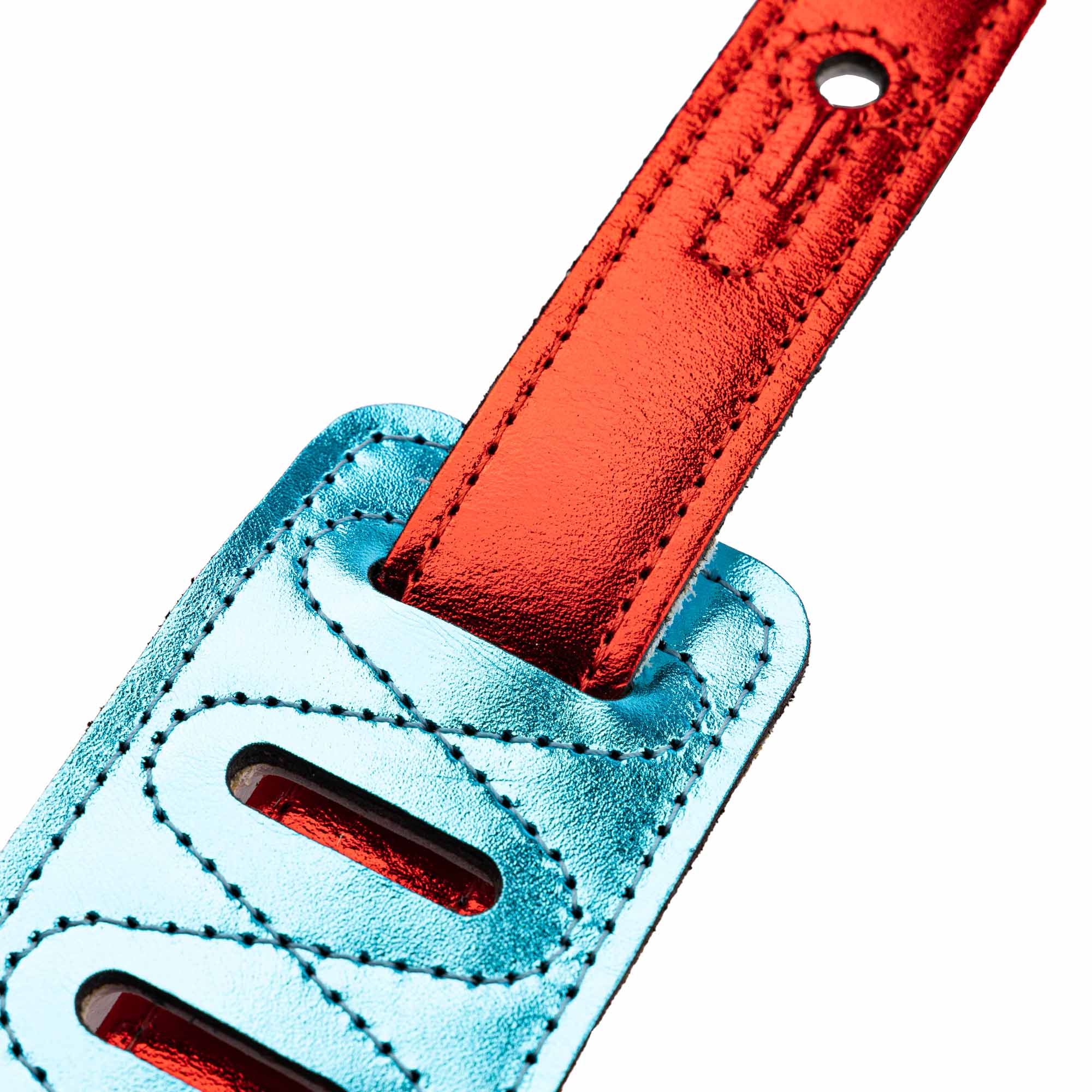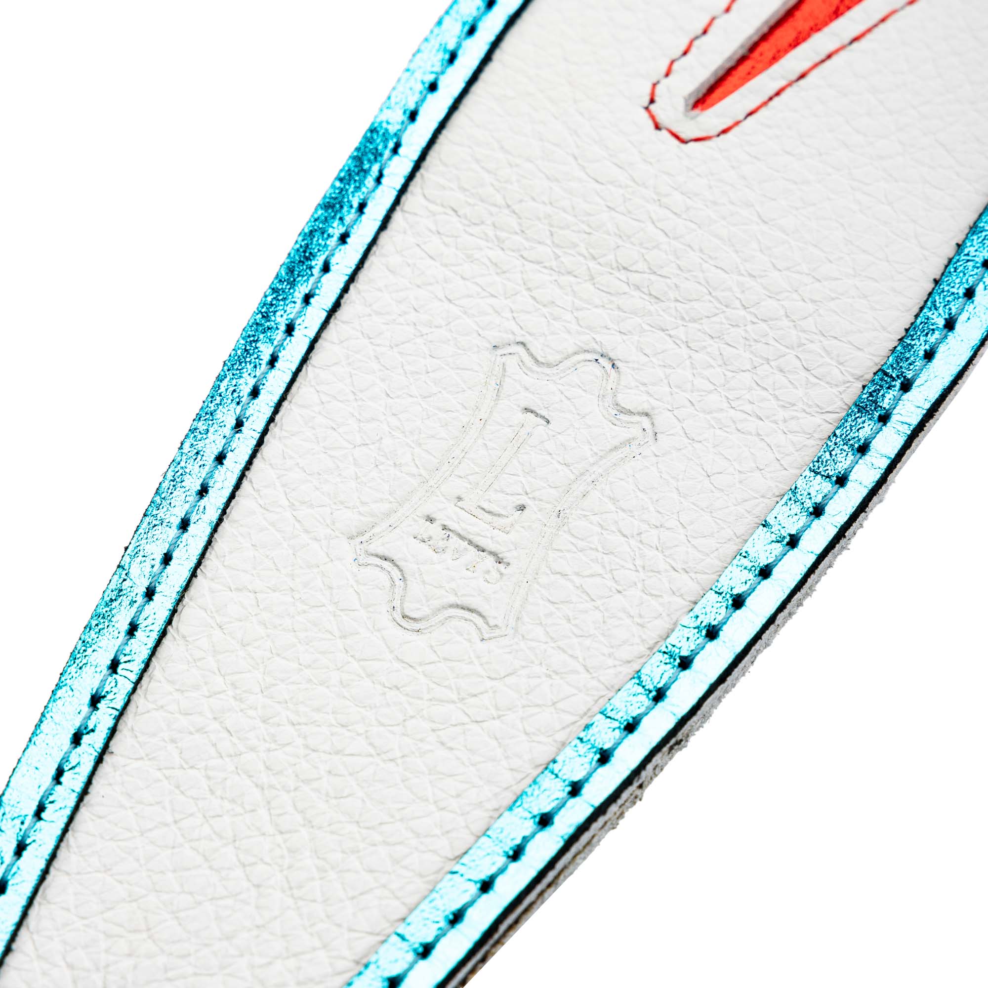 La MJH317-006 è la tracolla in pelle della serie Icon, realizzata da Levy's in collaborazione con l'artista Jodi Head. Questa serie combina materiali pregiati con design ispirati a un decennio creativo, gli anni '70. Con una larghezza di 2.5" (6.35 cm), ha una lunghezza regolabile da 48" (122 cm) a 55.5" (141 cm). Colorazione Glam Rock Lightning Bolt.