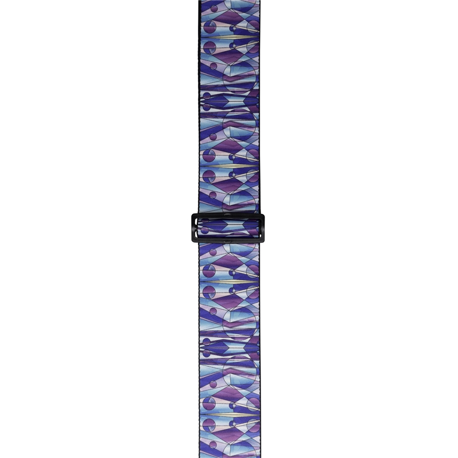 La MP3SG-005 è la tracolla in polipropene da 3" (7.62 cm) di casa Levy's, con stampa Stained Glass Design In Kaleidoscope Purple. Regolabile fino a 62" (157.48 cm).
