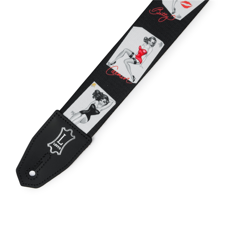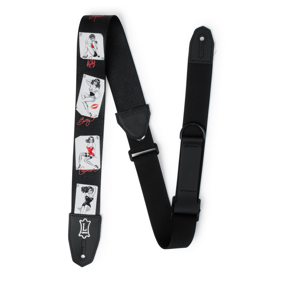 La MPRH-72 è la tracolla in poliestere da 2" (5.08 cm) di casa Levy's, regolabile da 43" (109.22 cm) a 57" (144.78 cm) grazie al sistema di regolazione RipChord. Stampa Pin Up.