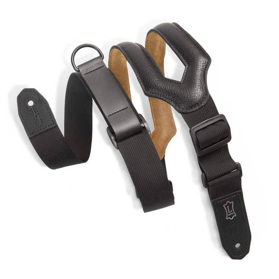 La MRHSS-BLK è la tracolla ergonomica in pelle della serie Right Height con tecnologia RipChord di casa Levy's. Ha una larghezza di 3" (7.62 cm), ed è regolabile fino a 57" (144.78 cm). Colorazione Black.