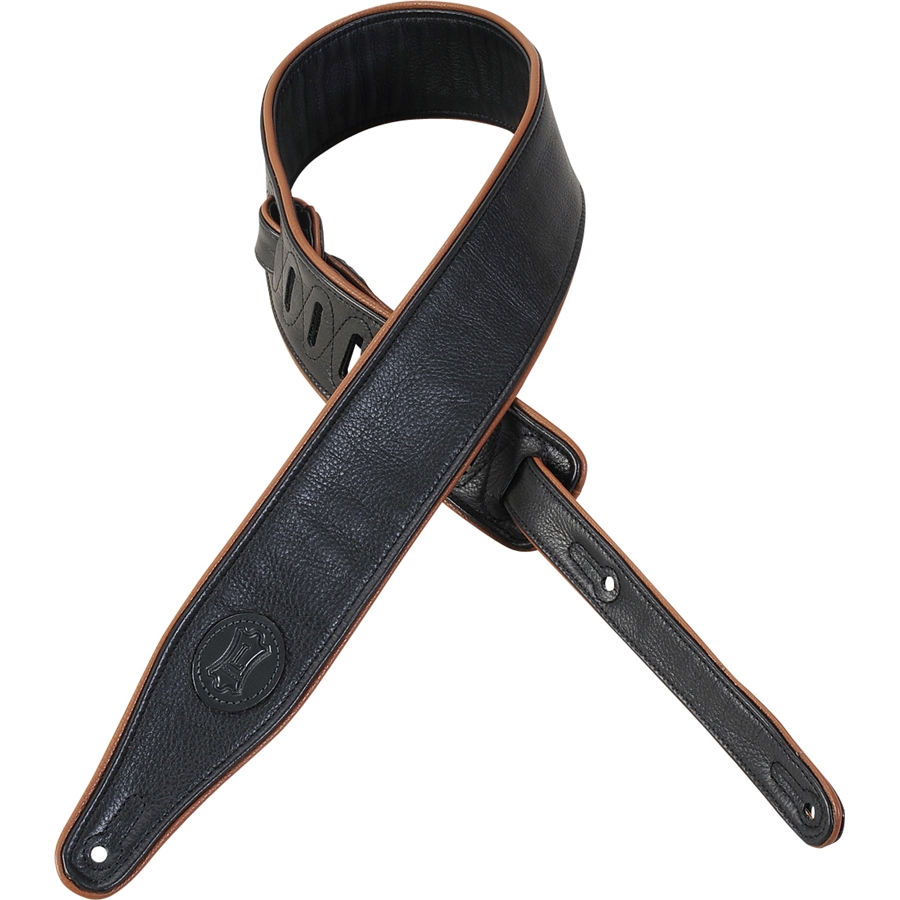 La MSSB17-BLK è la tracolla in pelle con piping color Caramel da 2" (5.08 cm) di casa Levy's, regolabile fino a 56" (142.24 cm). Colorazione Black.